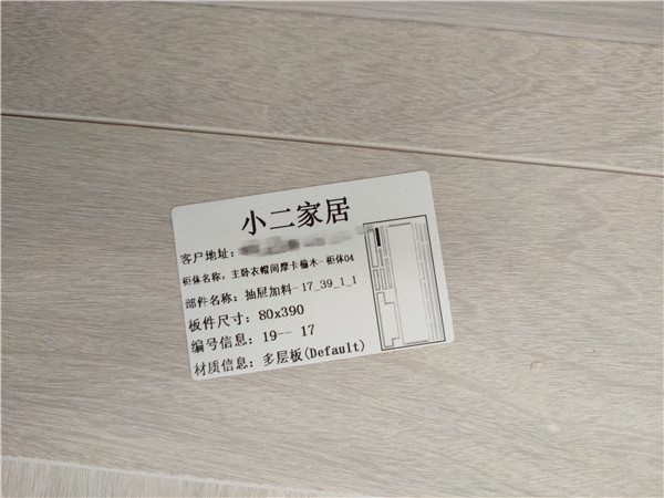 每塊板上都貼有小標(biāo)簽,方便后期安裝師傅安裝,封邊條上都帶有“優(yōu)端”logo的哦!方便后期售后服務(wù)。