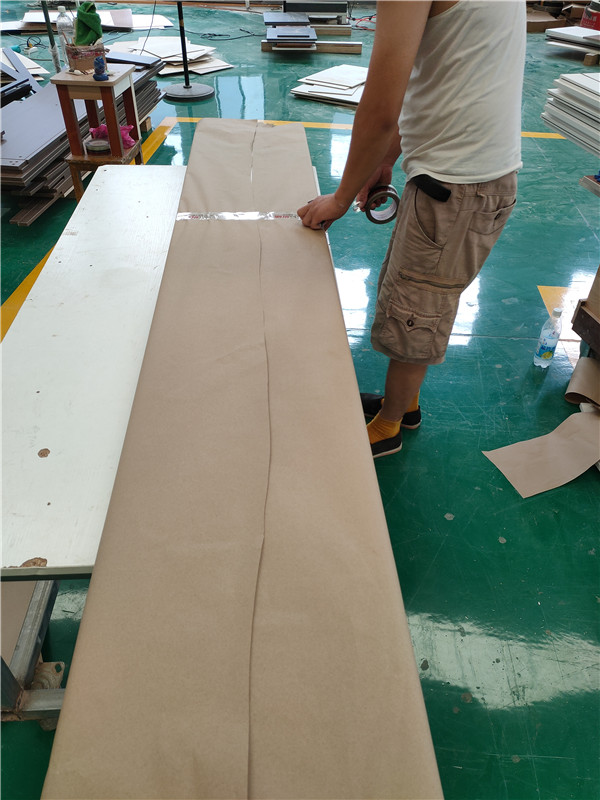封邊完畢,已進(jìn)入打包環(huán)節(jié)。師傅會用柏油清洗劑把板全部擦拭一遍,以保證裝到客戶家整潔美觀。