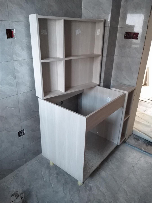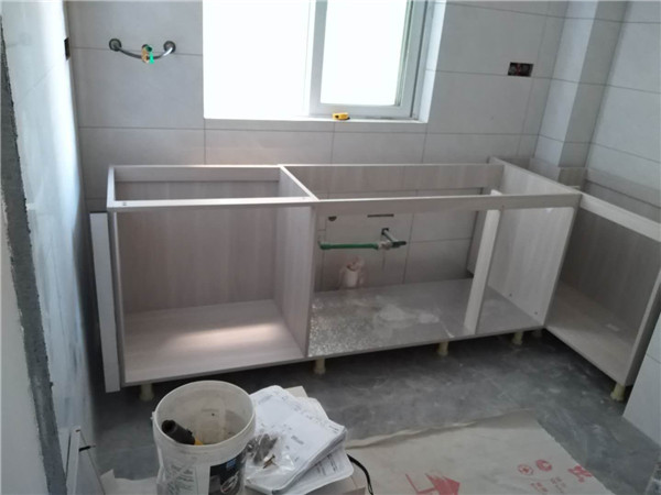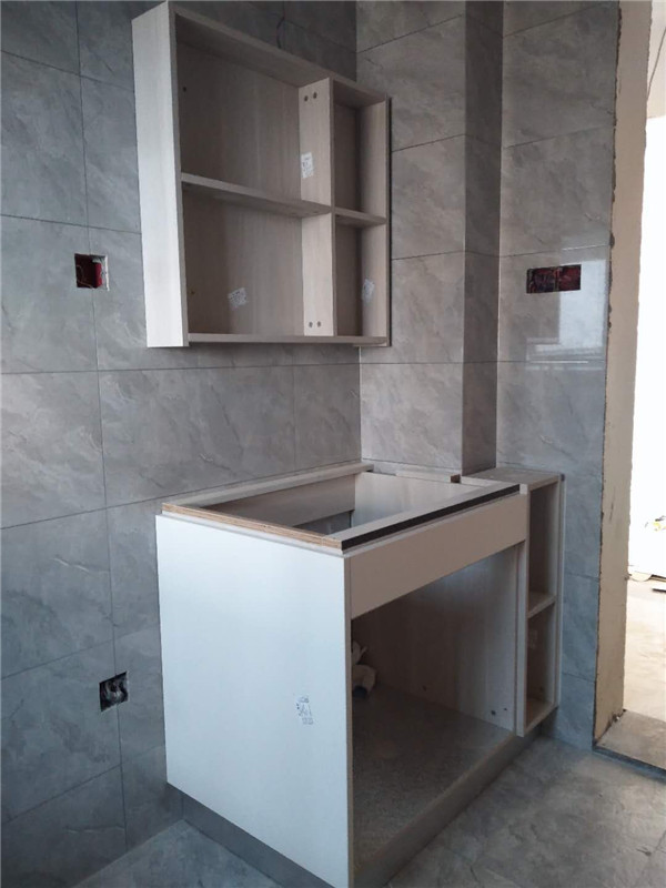 浴柜臺盆放置在現(xiàn)場,后期臺面安裝需用到。柜子安裝好后進(jìn)入臺面測量環(huán)節(jié),臺面量完后一個(gè)星期內(nèi)送貨并安裝。