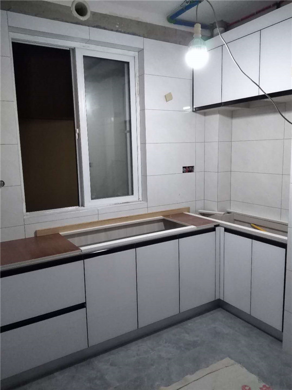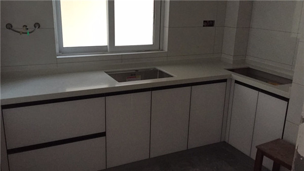 臺面安裝好了,配上白色門板,看上去干凈又清爽。