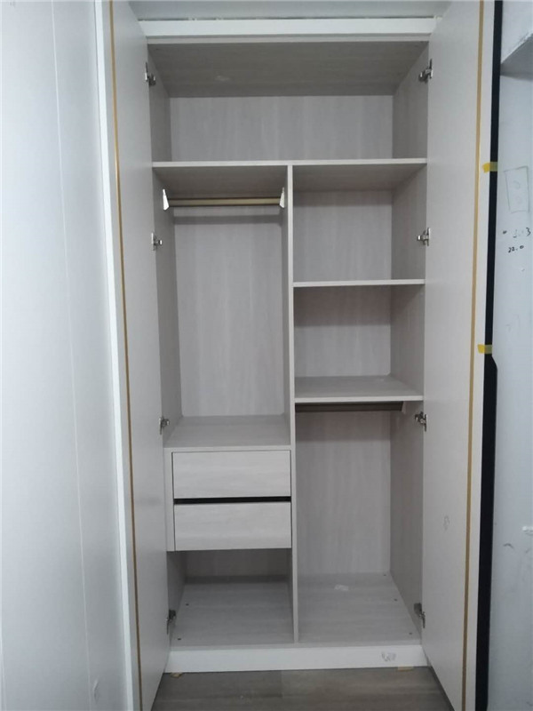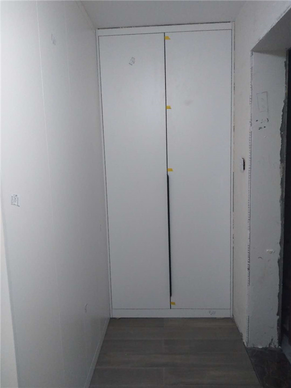 柜體安裝完畢啦,從柜子內(nèi)部結(jié)構(gòu)可以看出,業(yè)主還是多以掛衣服為主,結(jié)構(gòu)分明,后期收納起來肯定很方便。