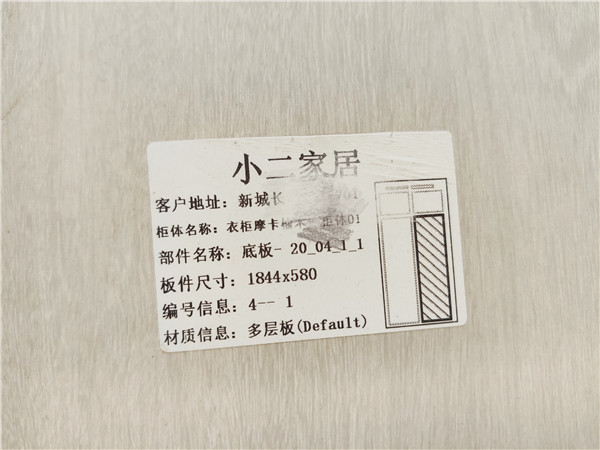 我家不管大小板都是四面封邊哦!每塊板上都貼有小標簽,方便后期安裝師傅安裝。