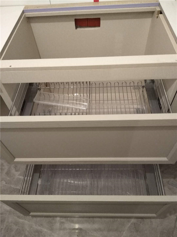 柜子安裝好啦!五金:海蒂詩導軌,諾米鉸鏈,諾米氣撐,諾米拉籃,索菲亞掛衣架等。水槽都鋪有防水錫紙,