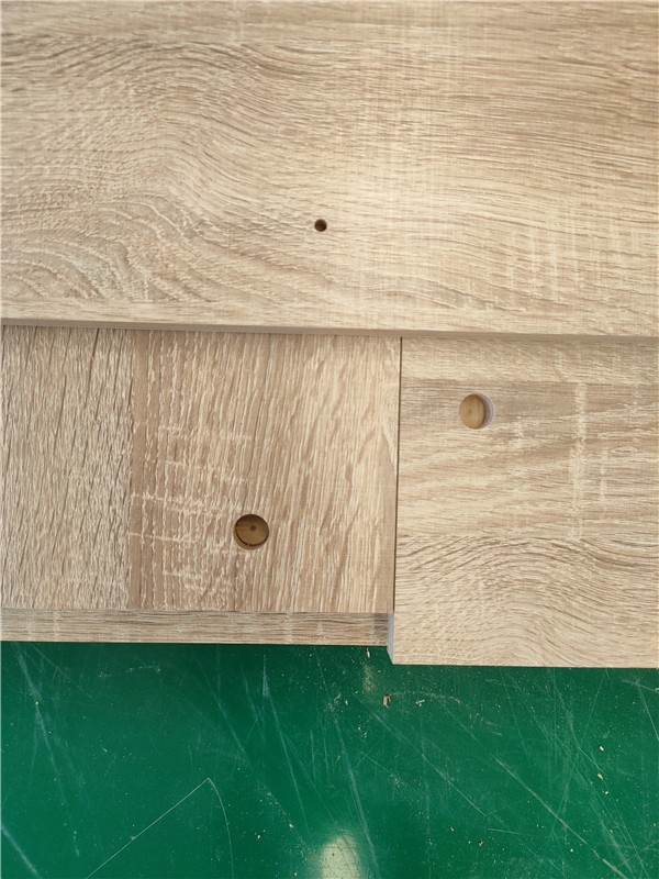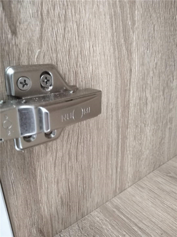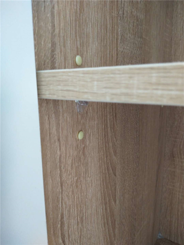 防止潮濕,鉸鏈我們配的是國產一線品牌諾米的,我們會在側板上多打兩個孔放活動層板并加入孔塞。