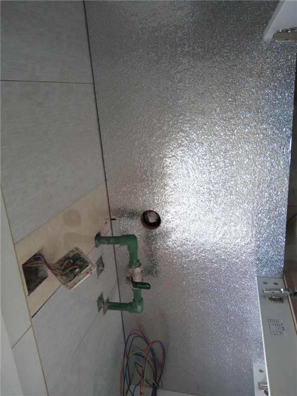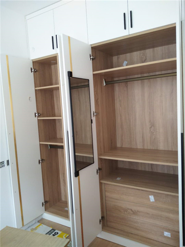 衣柜門板里面加入了到頂拉直器,配了個旋轉穿衣鏡,廚房底部我們貼了一層錫紙,