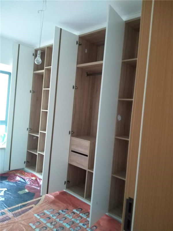 等久了吧~已進入打包環節了哦!柜門師傅會用柏油清洗劑全部擦拭一遍,以保證裝到客戶家整潔美觀。