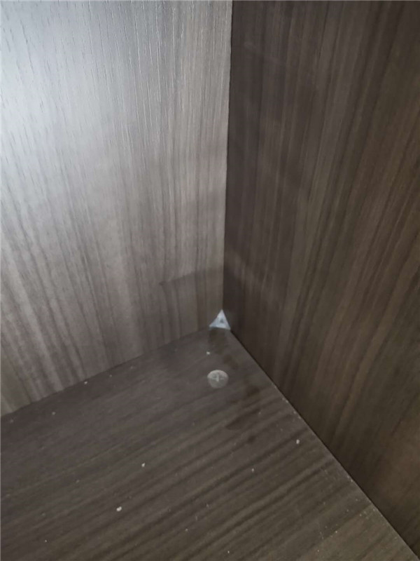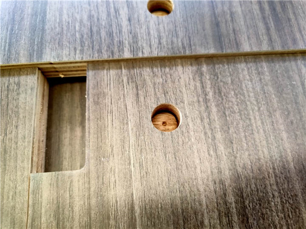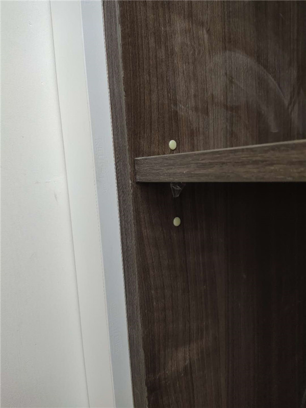沒有爆邊的情況,這樣后面封出來的邊更圓滑,全自動機(jī)器開料尺寸更精準(zhǔn)。插槽背板離墻面1.7公分,防止使用時間