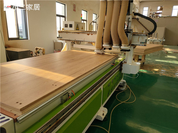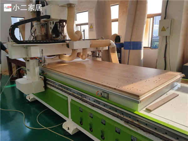 開始制作啦!專業設備裁板,板材使用平安樹實木多層板E0級制作,有高級的藍光防偽標識哦,