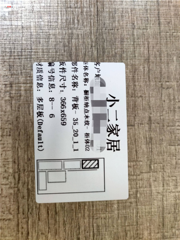 我家不管大小板都是四面封邊哦!每塊板上都貼有小標簽,方便后期安裝師傅安裝。