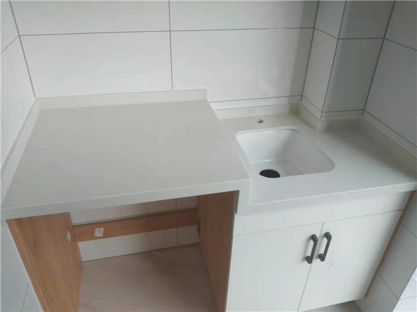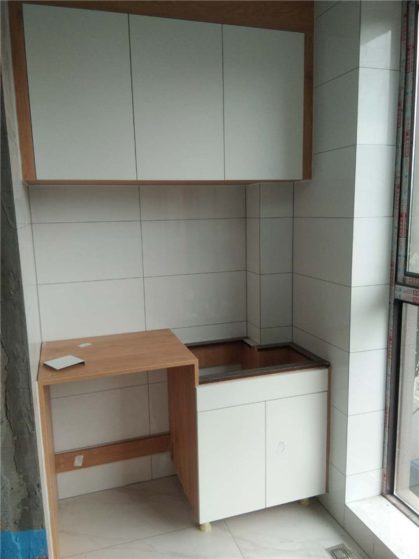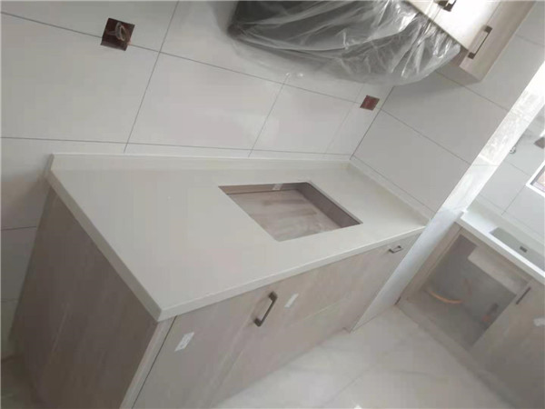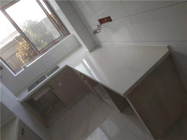 臺面安裝完成啦!選了石英石純色系列,看起來簡單,陽臺柜還做了高低臺面。