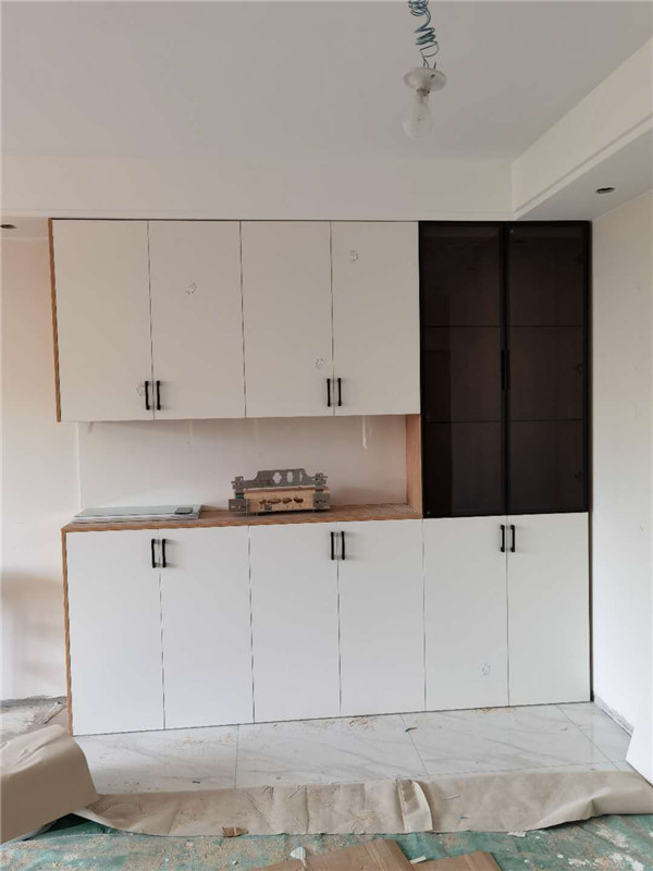 柜子安裝完畢啦,整體效果挺好看的,原木色配白色簡單清爽耐看,餐邊柜在搭配點灰色玻璃門顯得高端大氣而不單調,