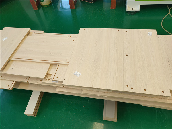 開始制作啦!專業設備裁板,板材使用平安樹實木多層板E0級制作,有高級的藍光防偽標識哦,