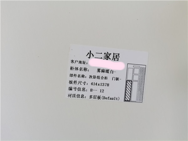 我家不管大小板都是四面封邊哦!每塊板上都貼有小標簽,方便后期安裝師傅安裝。