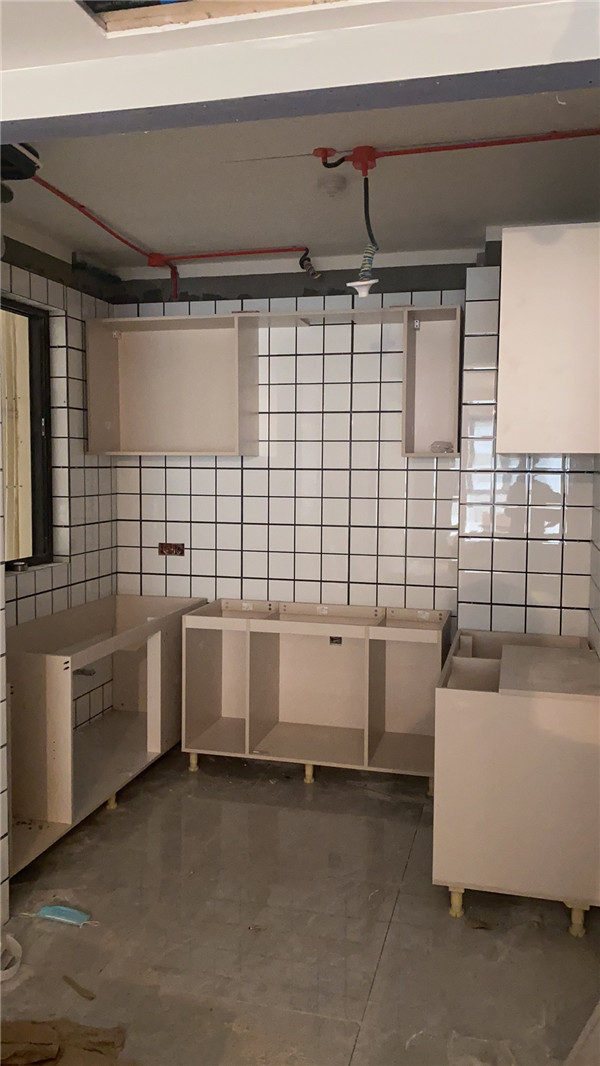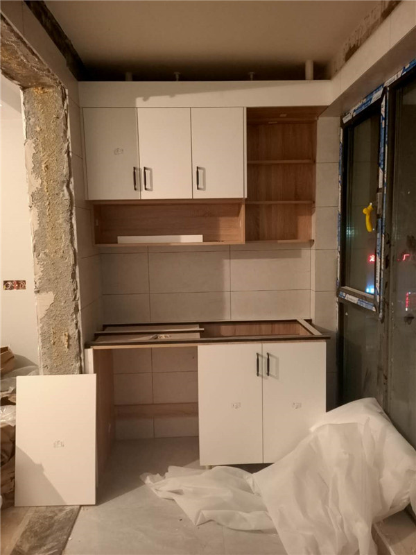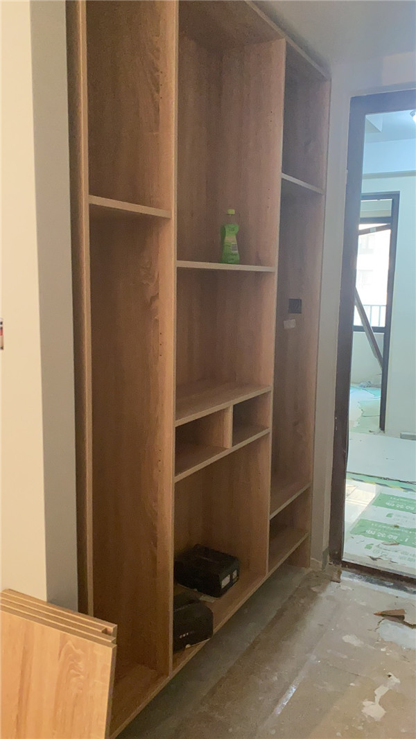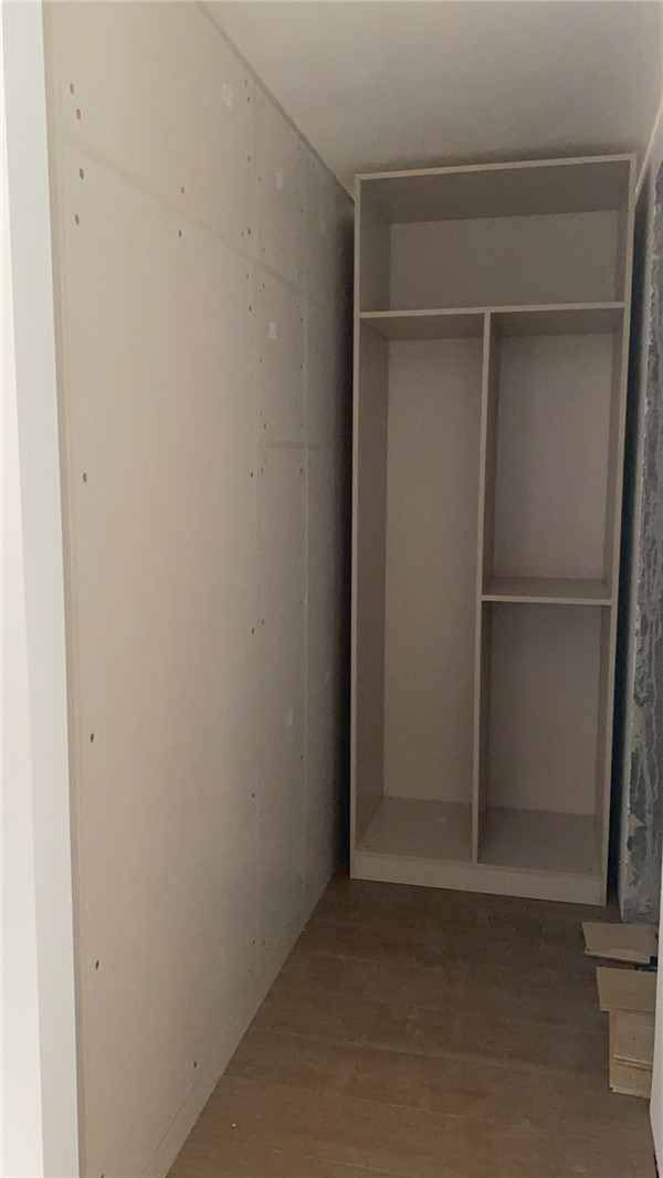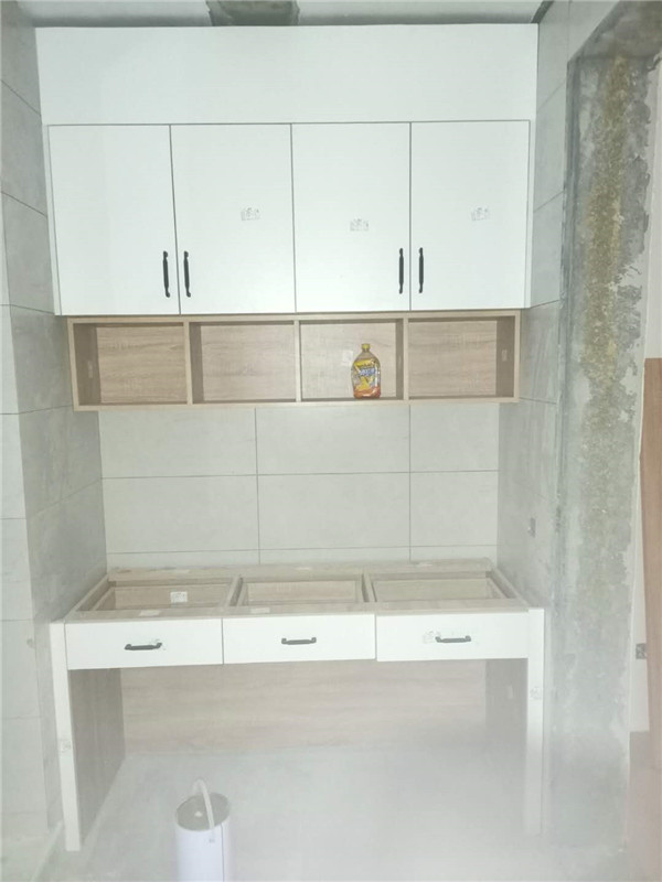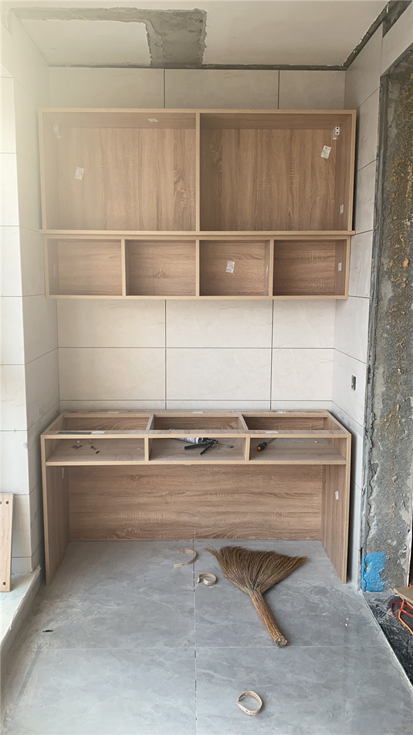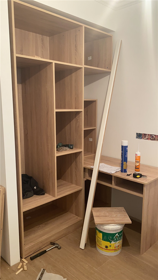 柜體已經基本拼裝完成了,顏色以淺色系為主,干凈清爽,期待后期柜門安裝后的效果吧!