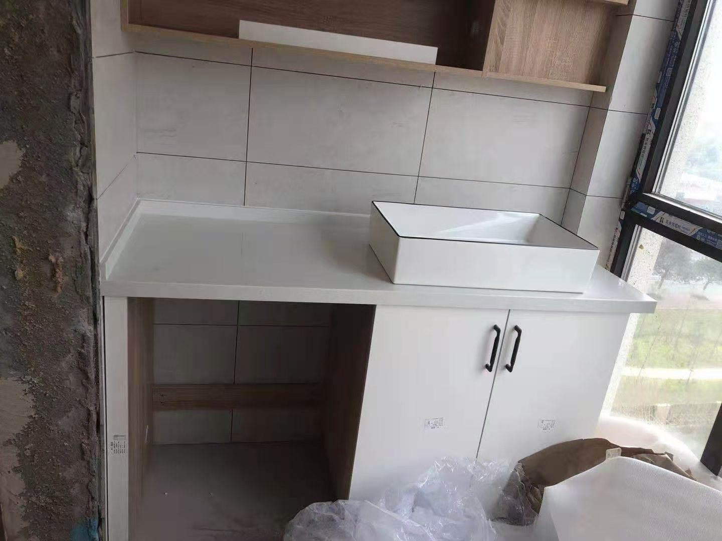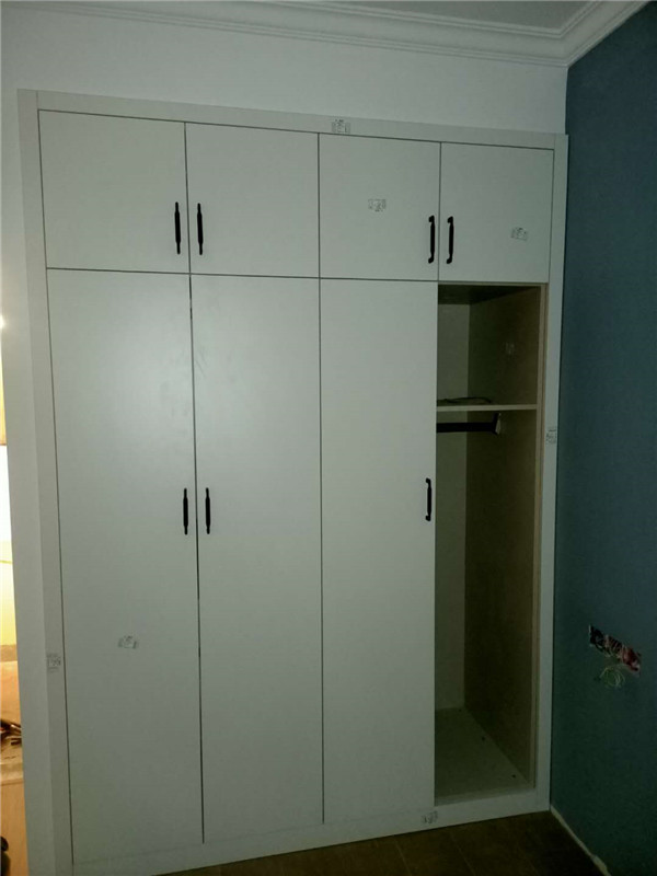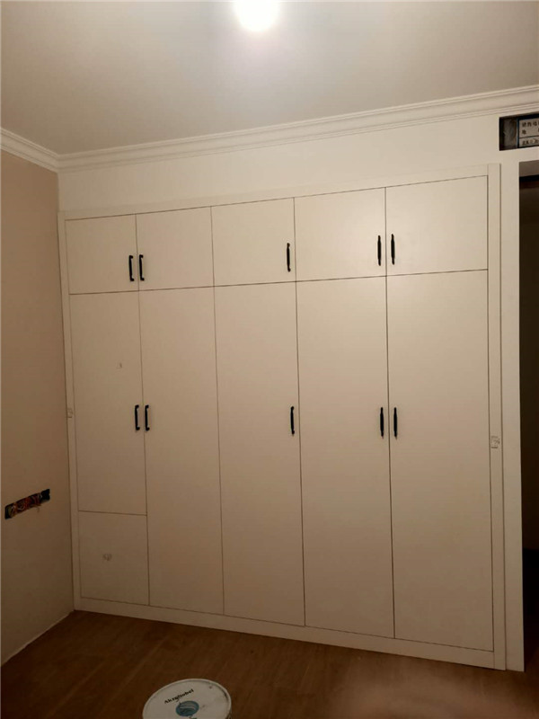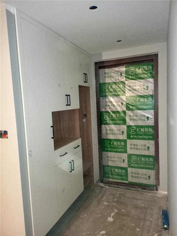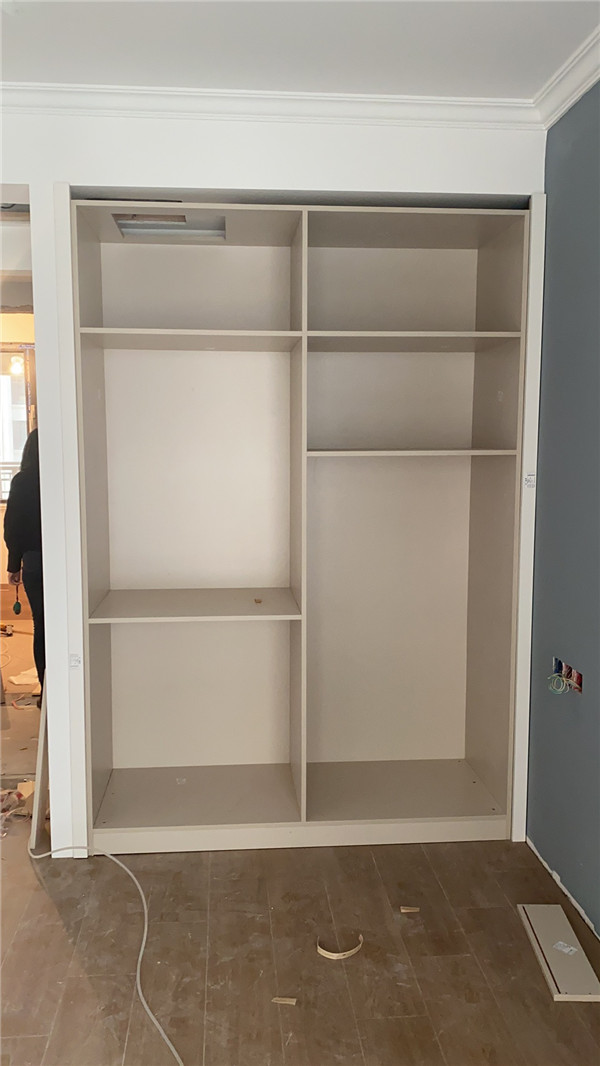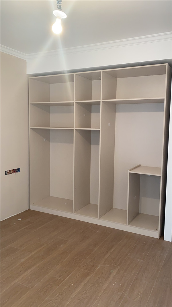柜體已經基本拼裝完成了,顏色以淺色系為主,干凈清爽,期待后期柜門安裝后的效果吧!