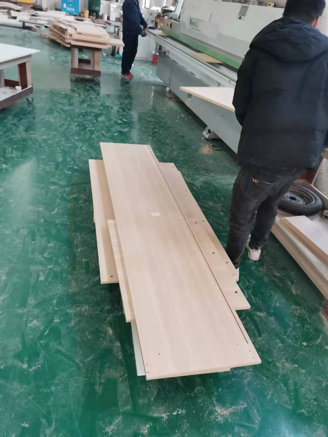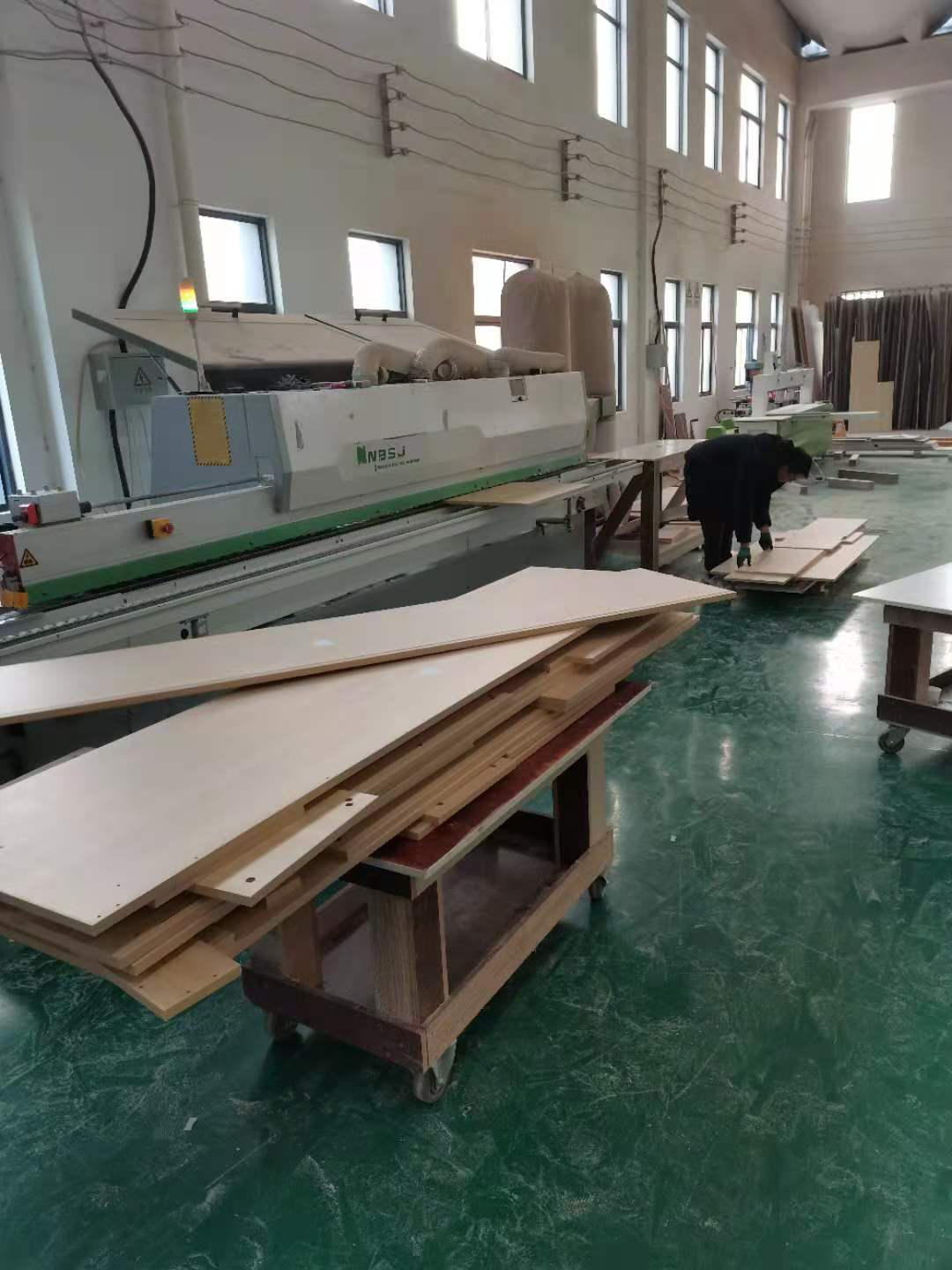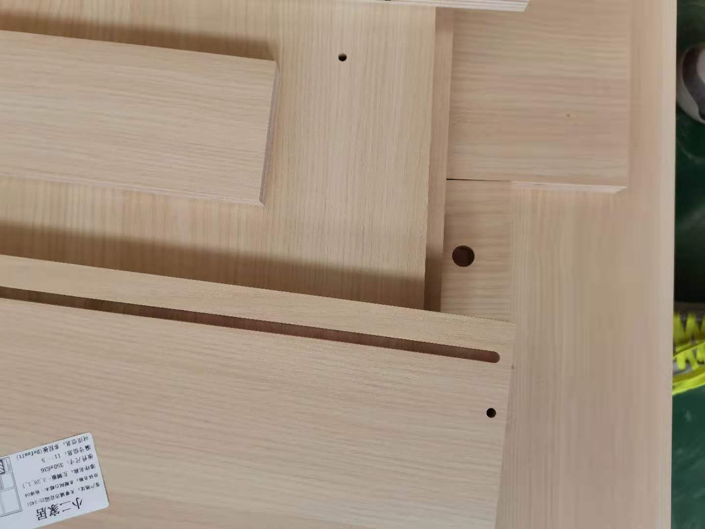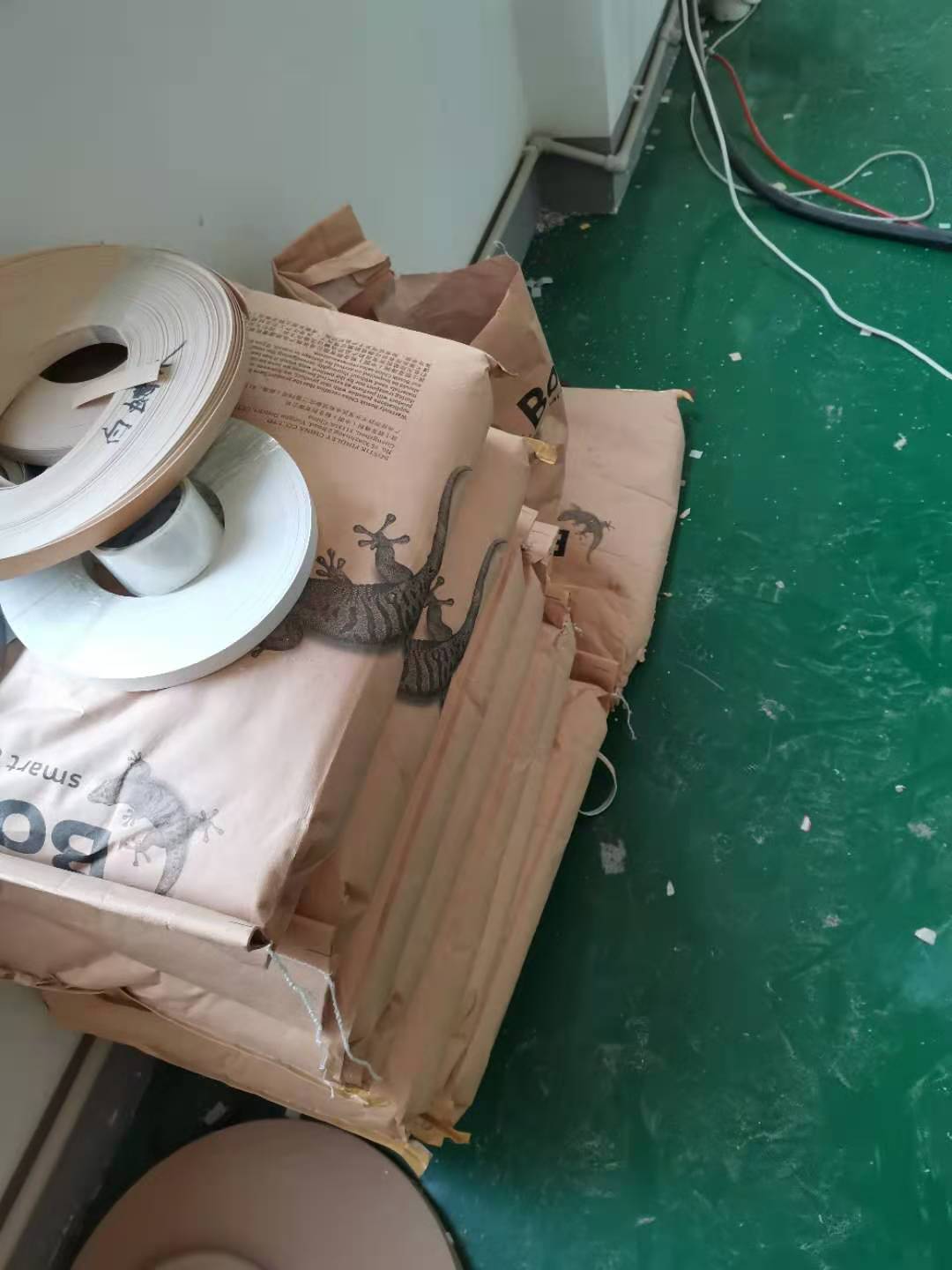 開始封邊啦,用的是1.0厚度的封邊條,膠水采用的是波士熱熔顆粒膠。板上都有小標(biāo)簽哦