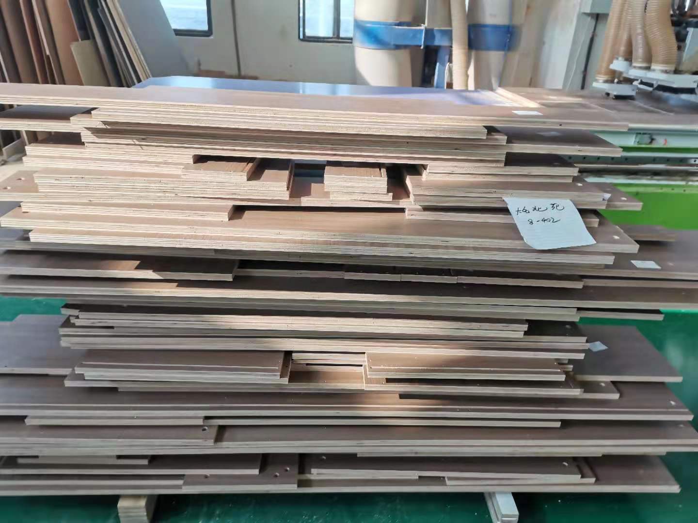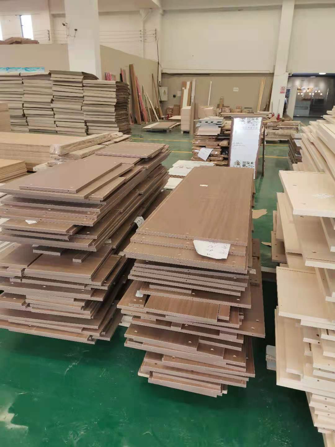 生產(chǎn)完的板材堆疊到一起,準(zhǔn)備打包