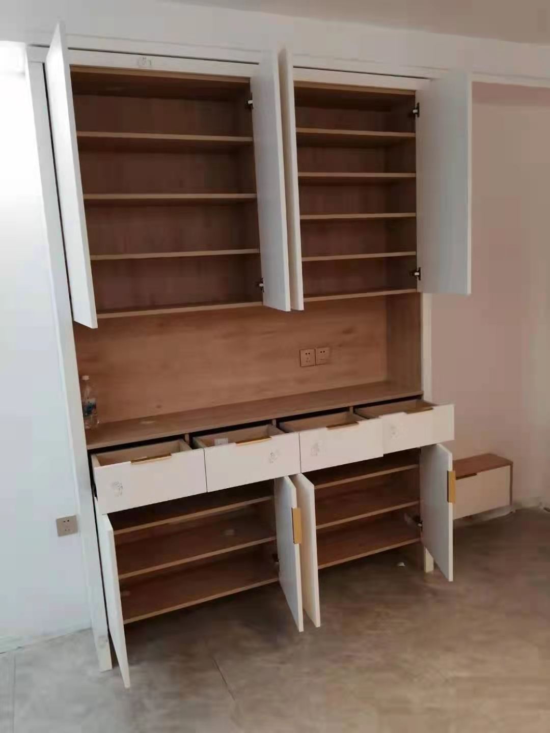 插槽背板離墻面1.7公分,防止使用時(shí)間常出現(xiàn)柜體發(fā)霉的現(xiàn)象。拆好的板師傅都整整齊齊放在墊板上,沒有高矮不齊的現(xiàn)象。