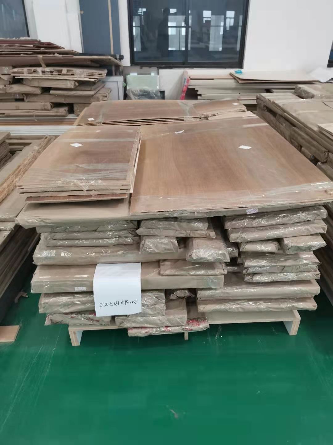 打包完成的板材堆放在一起
