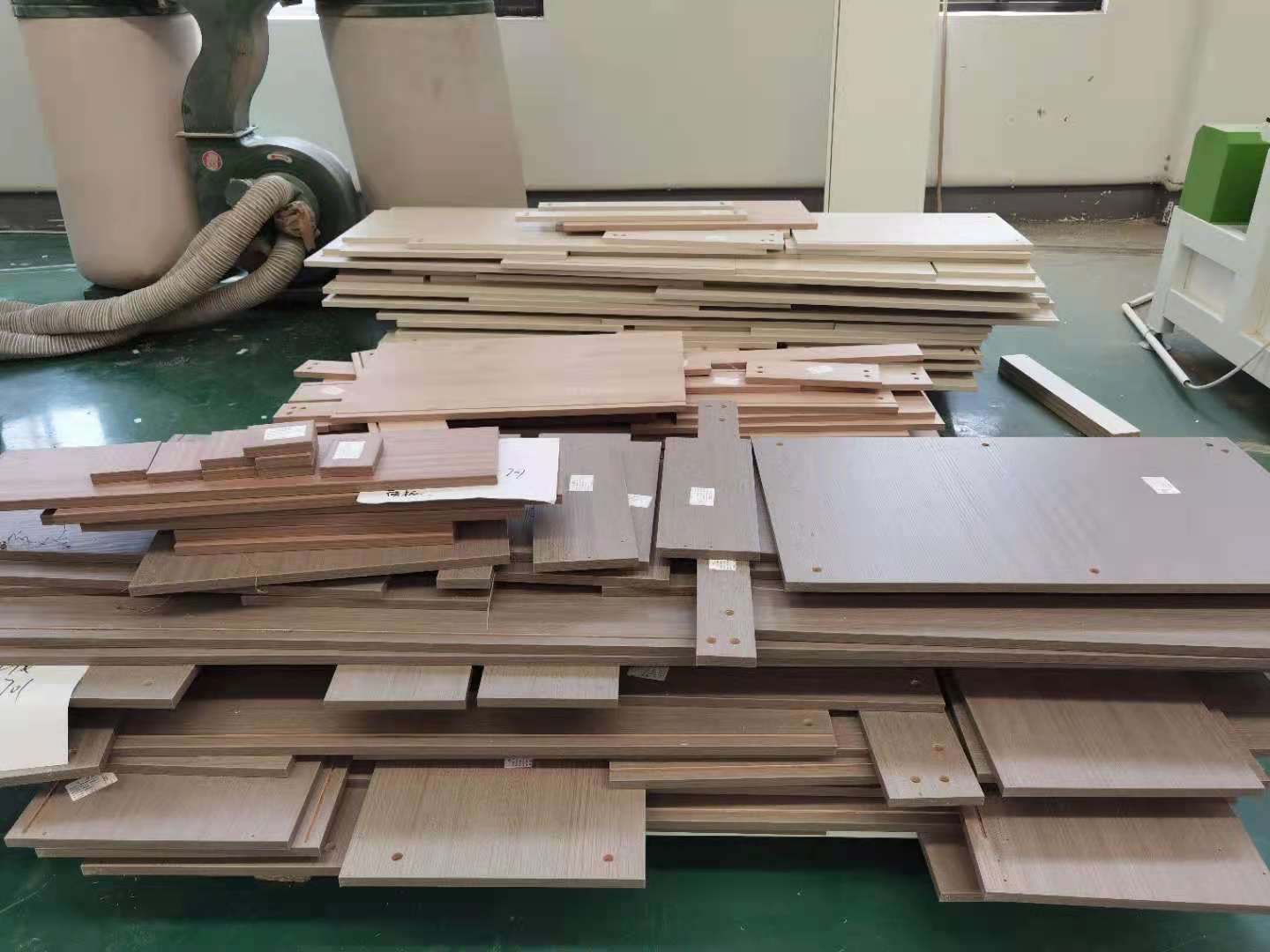 部分板材封邊完成,我們封邊采用的是1.0厚的puv封邊條,方便前口倒圓弧。整體美觀又不容易磕碰。膠水采用美國波士顆粒熱熔膠,粘合度更好也更環保。我家不管大小板都是四面封邊哦,每塊板都貼有小標簽,方便后期安裝師傅安裝。
