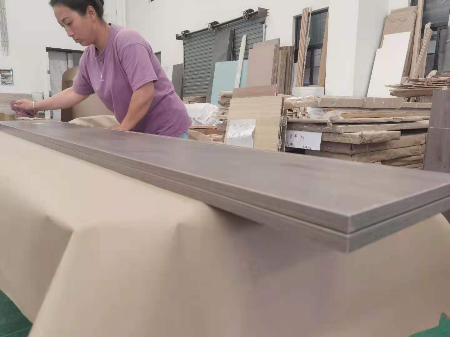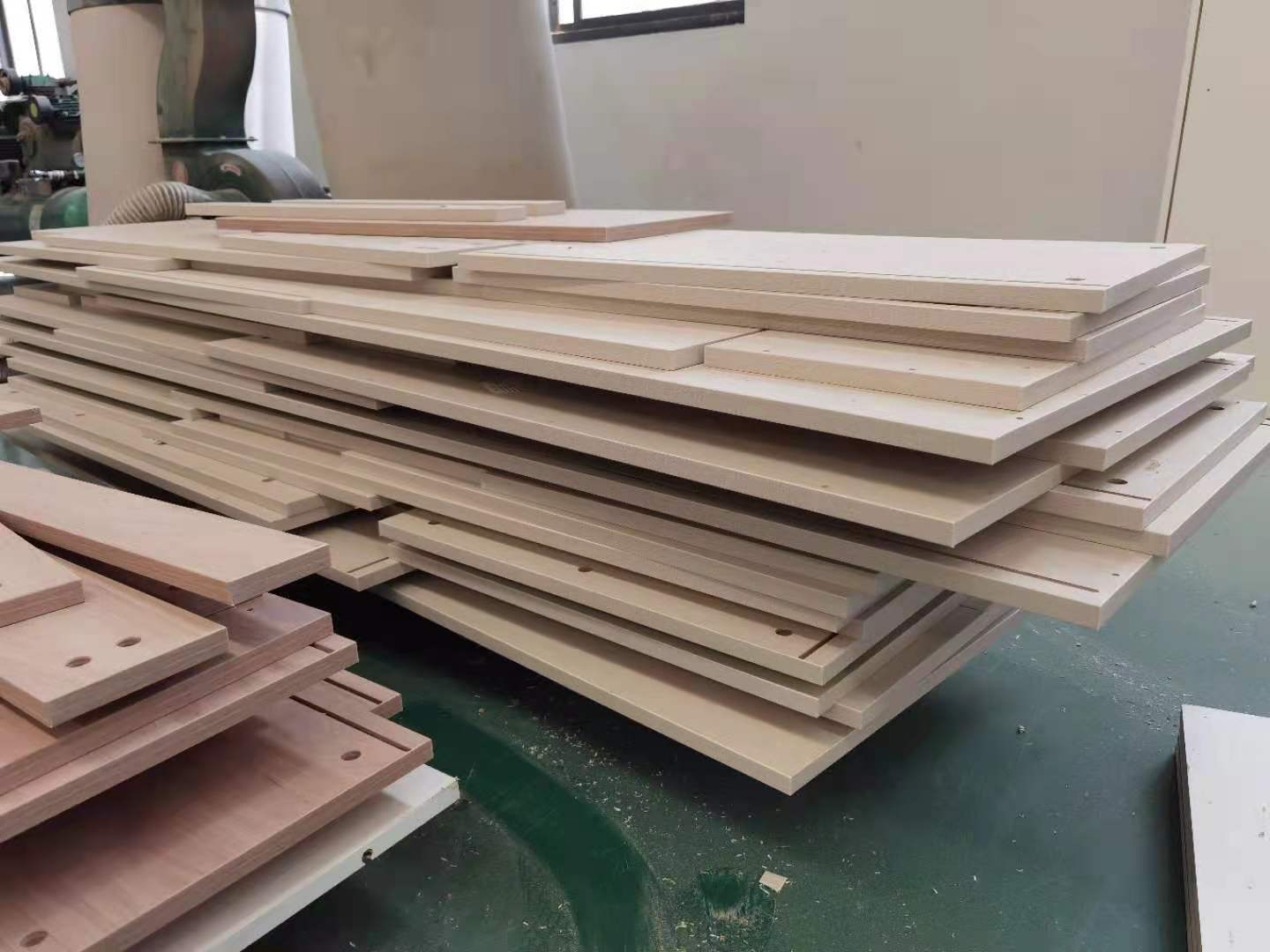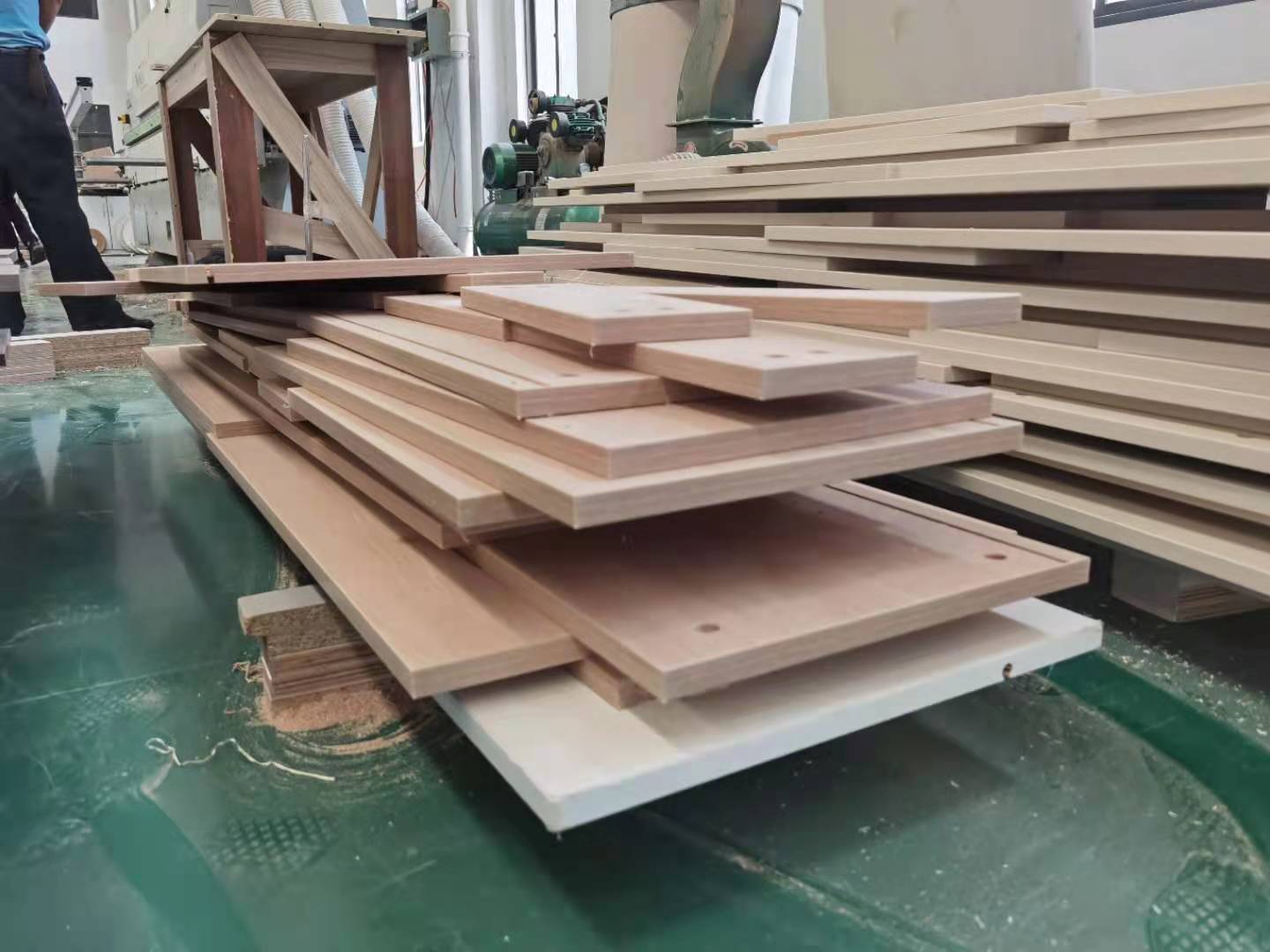 開始制作啦,專業設備裁板,板材使用多層板,邊口都是直的,沒有爆邊的情況,這樣后面封出來的板更圓滑,全自動機器開料尺寸更精準,拆好的板材師傅都整整齊齊的放在墊板上,板下面都墊了墊板的哦,第一防止地面有東西劃傷,第二防潮。