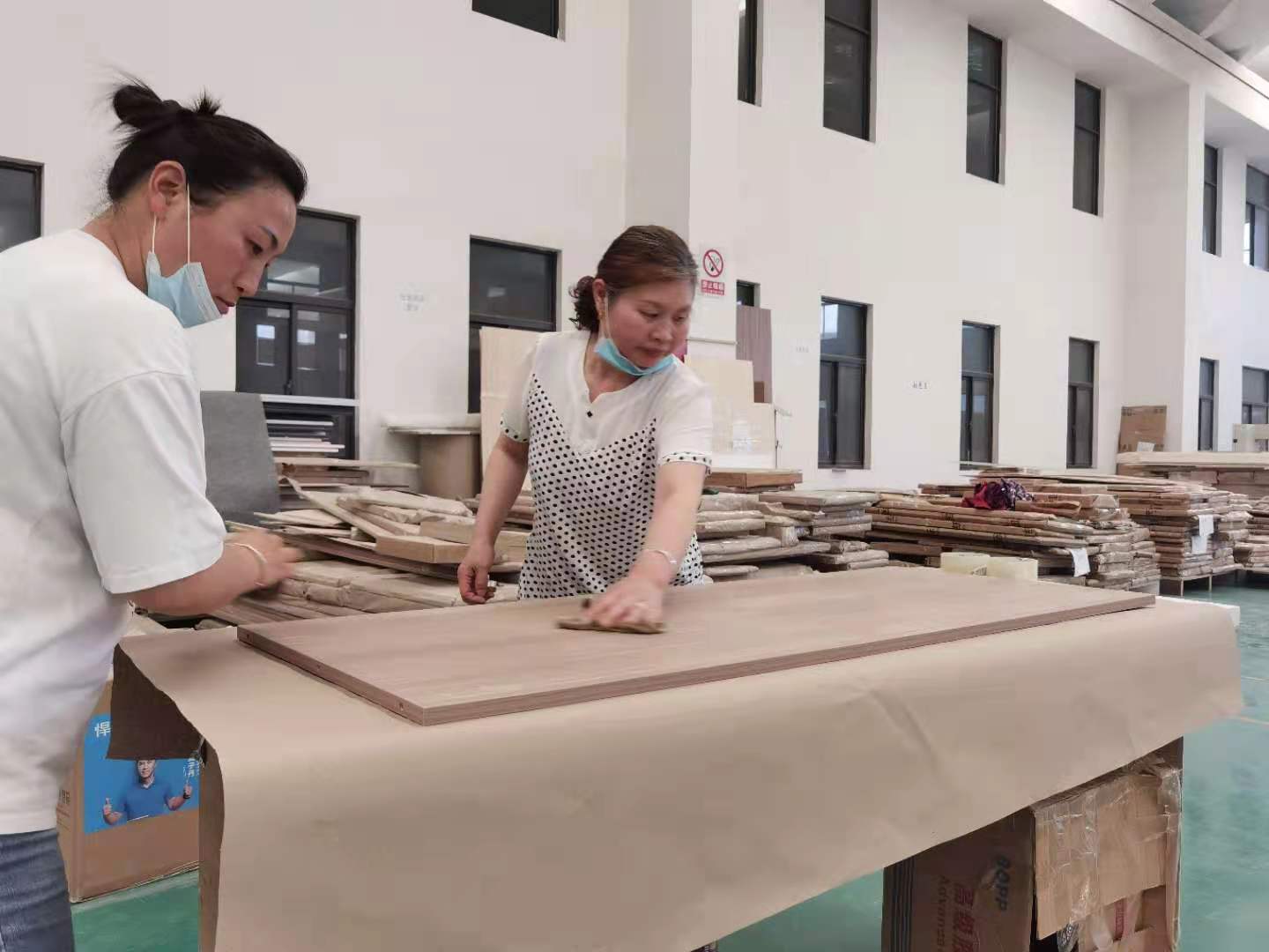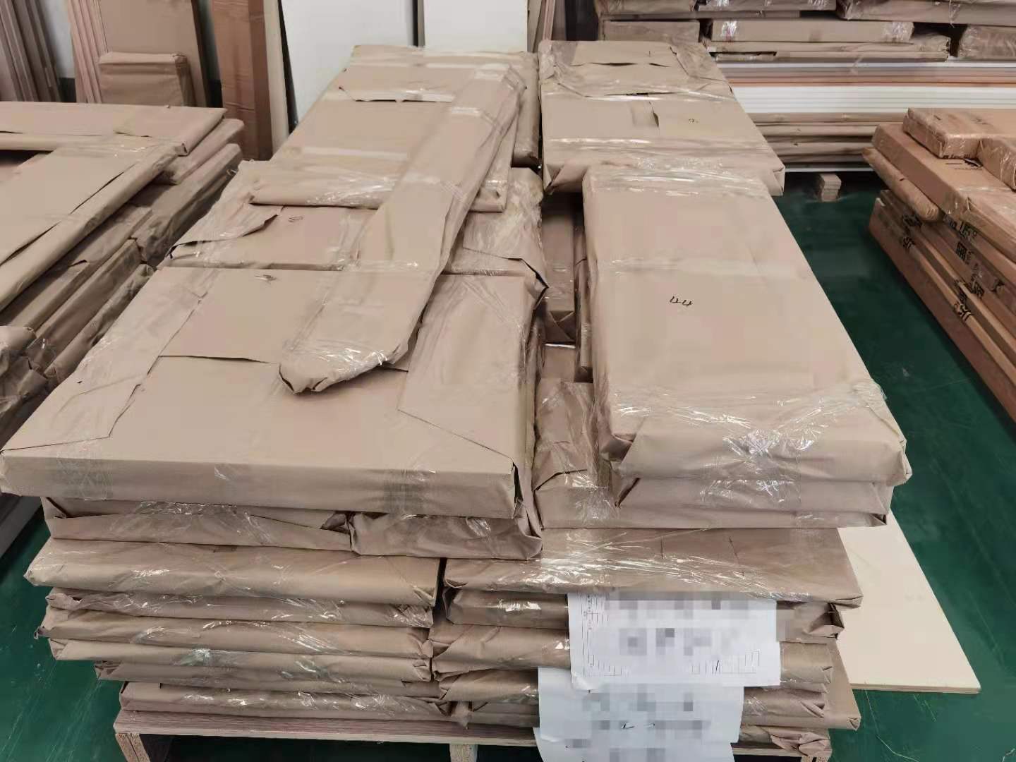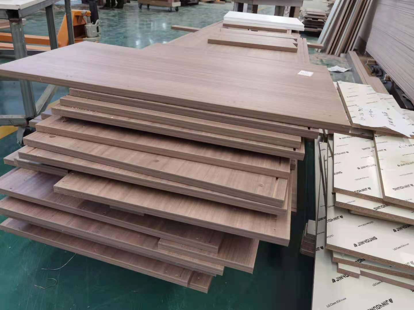 開始制作啦,專業設備裁板,板材使用多層板,邊口都是直的,沒有爆邊的情況,這樣后面封出來的板更圓滑,全自動機器開料尺寸更精準,拆好的板材師傅都整整齊齊的放在墊板上,板下面都墊了墊板的哦,第一防止地面有東西劃傷,第二防潮。