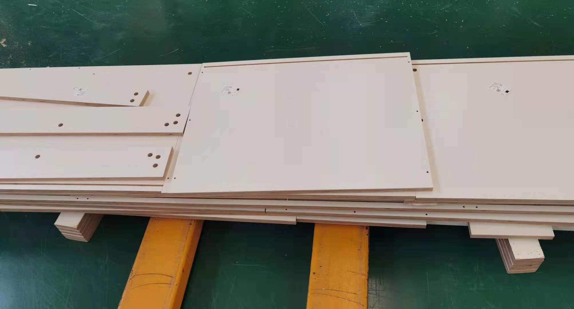 開始制作啦!專業設備裁板,板材使用平安樹實木多層板E0級制作,有高級的藍光防偽標識哦,邊口都是直的,沒有爆邊的情況,這樣后面封出來的邊更圓滑,全自動機器開料尺寸更精準。插槽背板離墻面1.7公分,防止使用時間常出現柜體發霉的現象。拆好的板師傅都整整齊齊放在墊板上,沒有高矮不齊的現象,板下面都墊了墊板的哦,第一:防止地面有東西劃傷或者磕碰到板面,第二:防潮