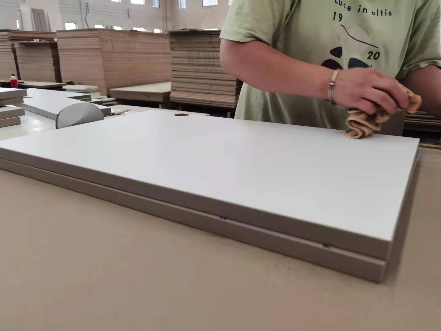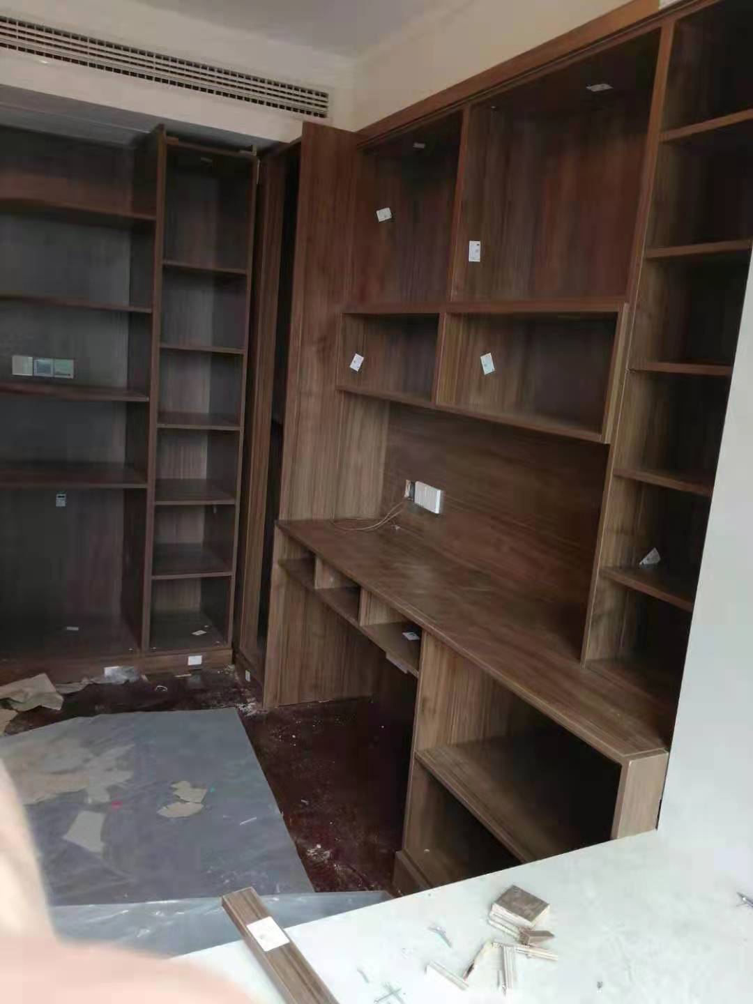 柜門師傅會用柏油清洗劑全部擦拭一遍,以保證裝到客戶家整潔美觀。