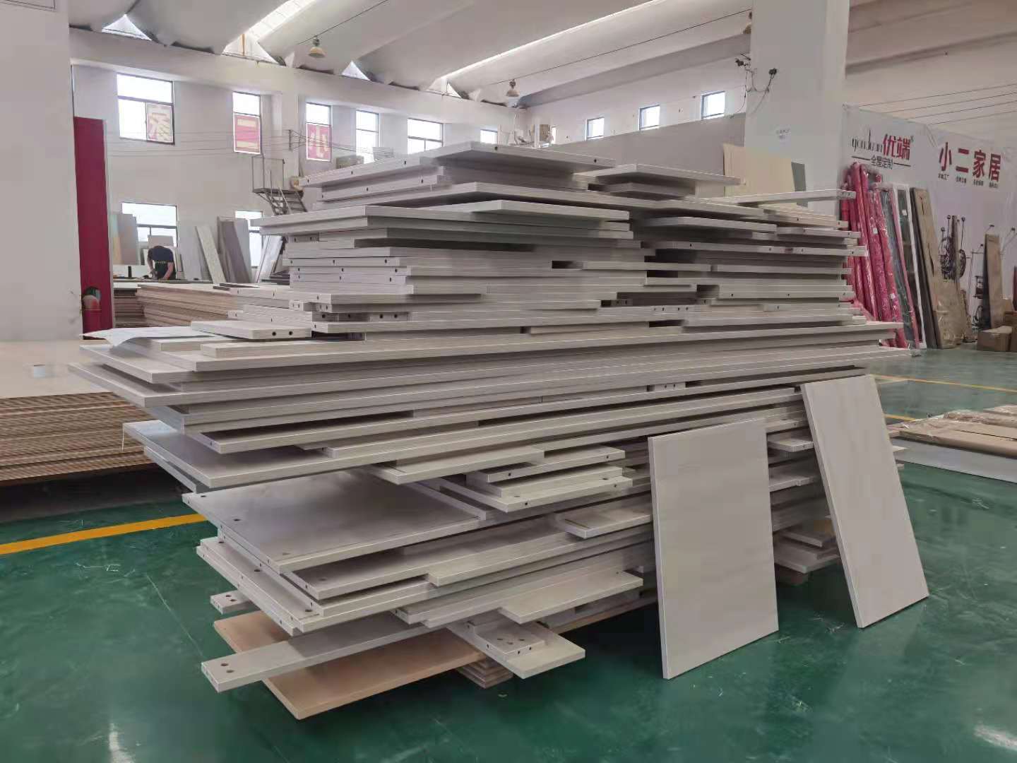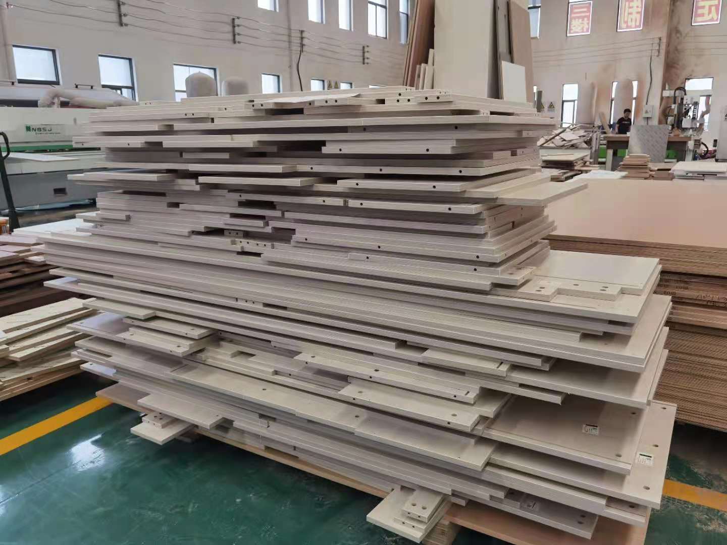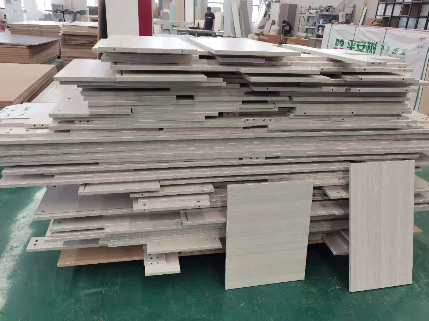 開始制作啦,專業設備裁板,板材使用平安樹實木多層E0級制作,有高級的藍光防偽標識哦,邊口都是直的,沒有爆邊的情況,這樣后面封出來的邊更圓滑,全自動機器開料尺寸更精準。插槽背板離墻面1.7公分,防止使用時間長出現柜體發霉的現象。拆好的板師傅都整整齊齊放在墊板上,沒有高矮不齊的現象,板下面都墊了墊板的哦,第一:防止地面有東西劃傷或者磕碰到板面。第二:防潮。