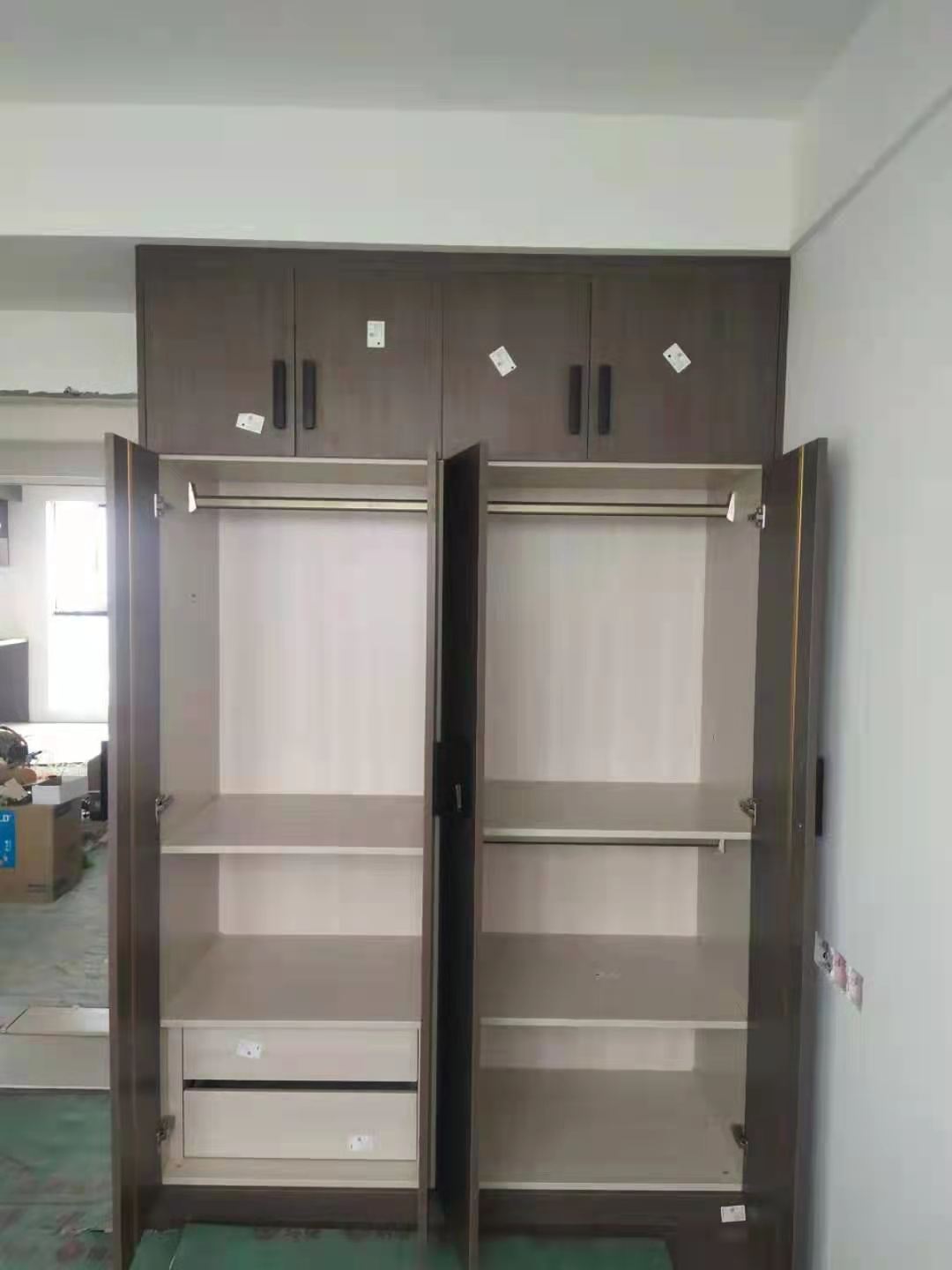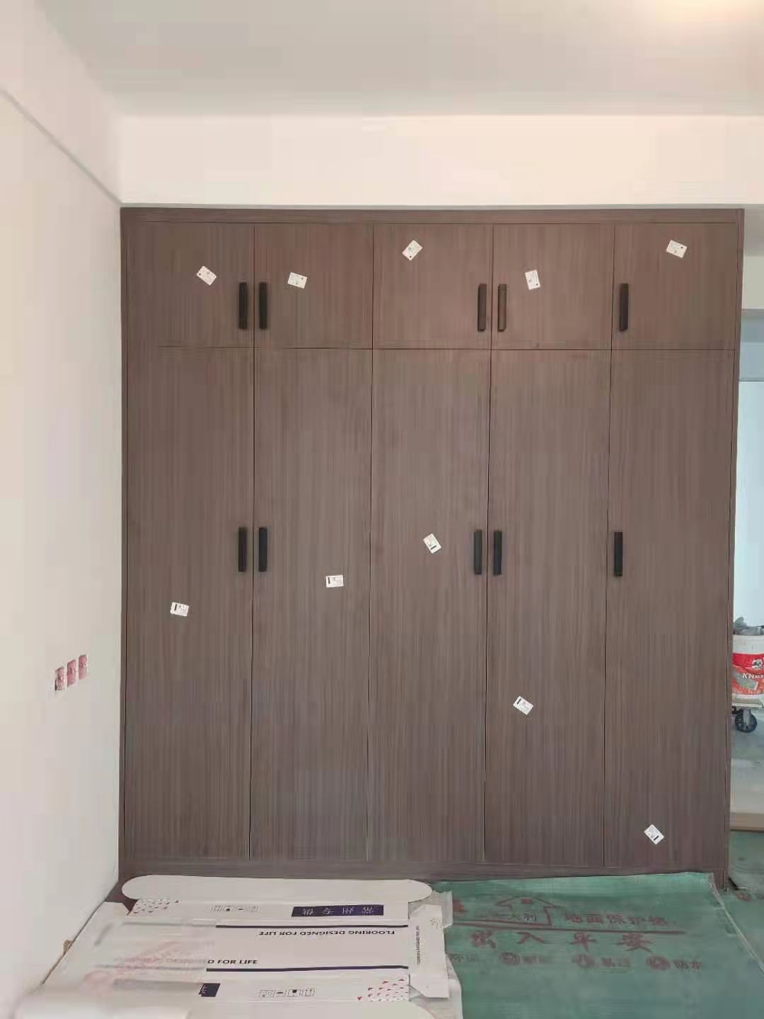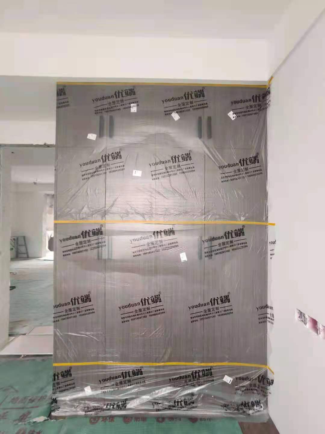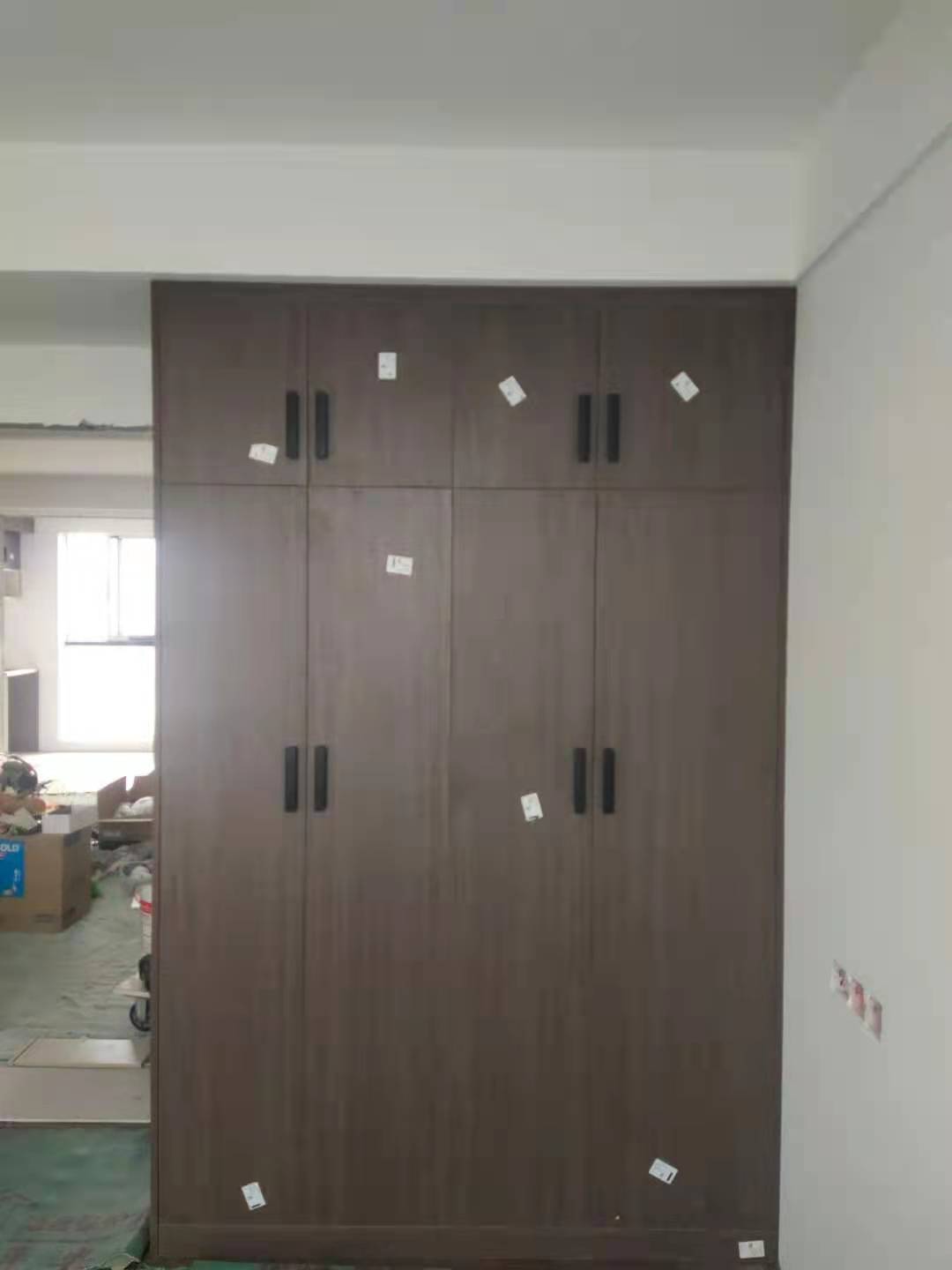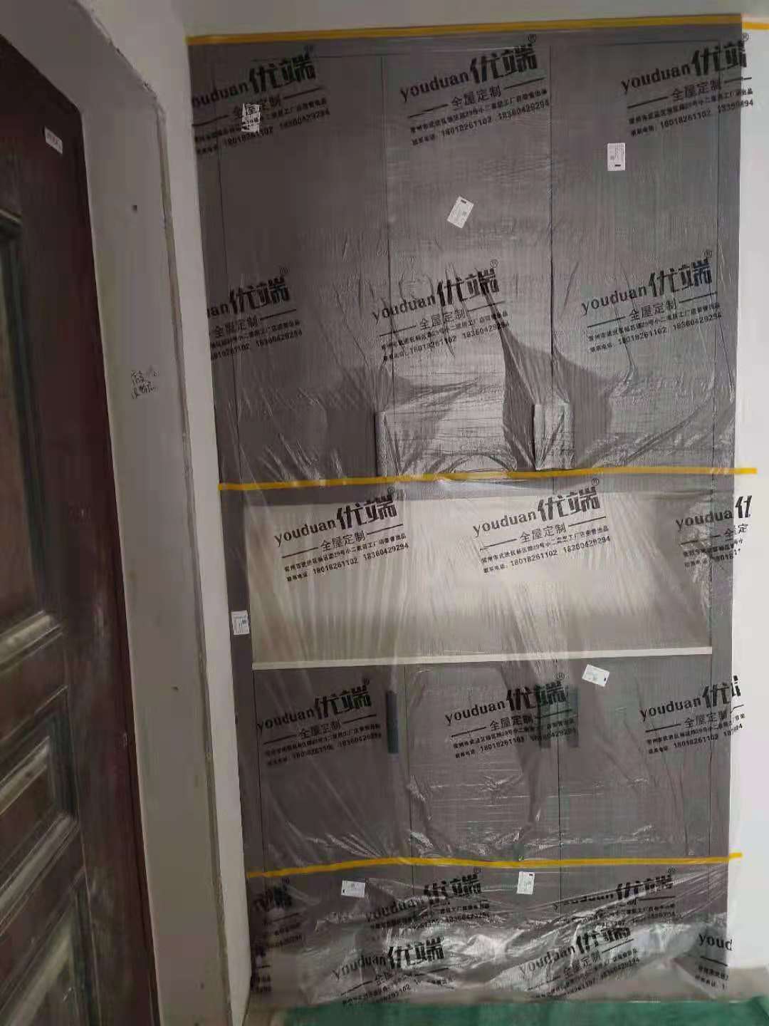 我們家安裝完畢,廚柜衣柜都用塑料膜保護起來,防止灰塵進入影響導軌的拉伸。