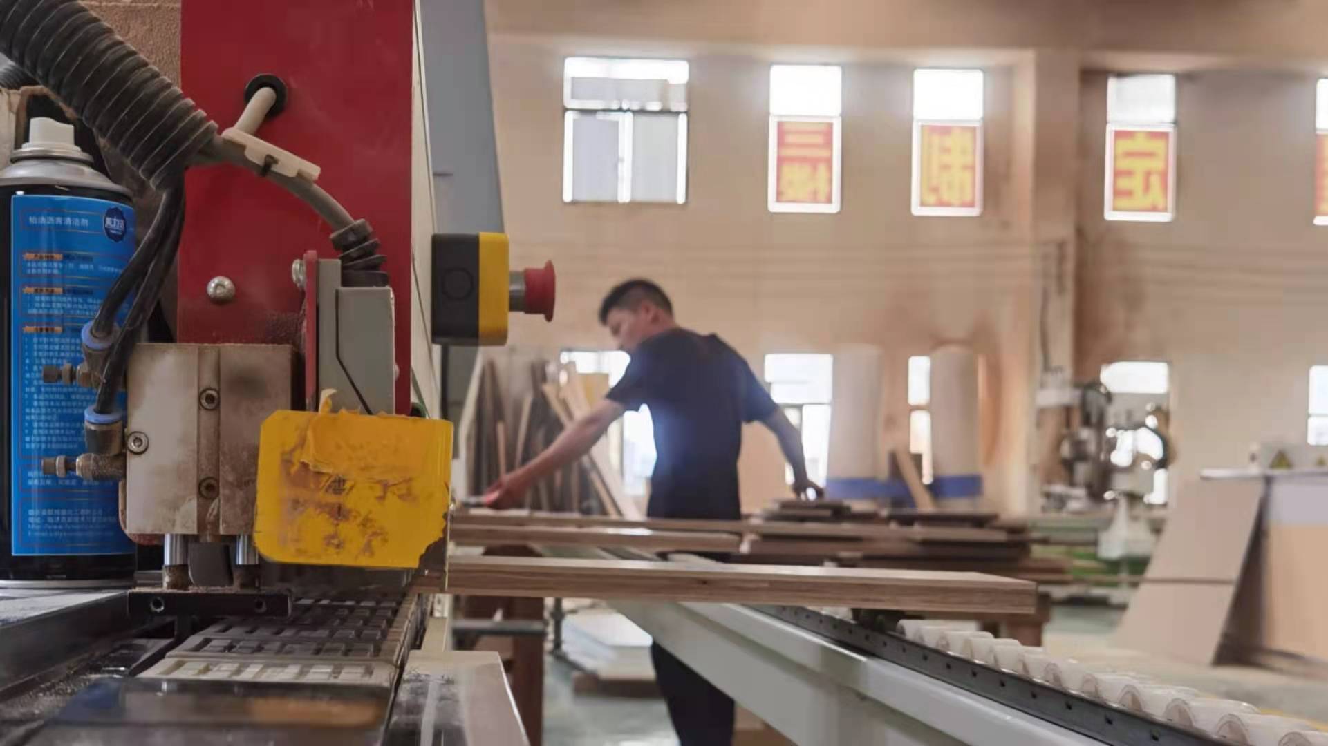 膠水采用美國(guó)波士熱熔顆粒膠,當(dāng)設(shè)備溫度達(dá)到180℃以上就好開始封邊了。我家不管大小板都是四面封邊哦!每塊板上都貼有小標(biāo)簽,方便后期安裝師傅安裝。