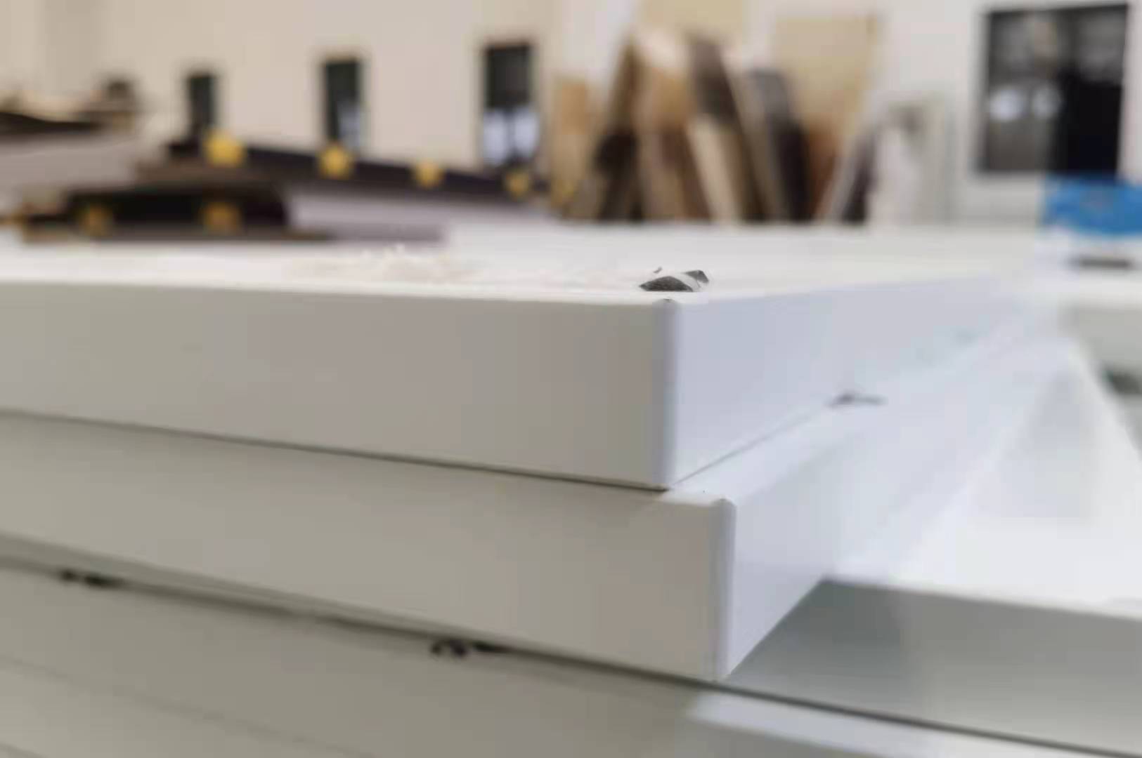 開始封邊啦,封邊采用的是1.0厚的PUR封邊條,方便前口倒圓弧,整體效果即美觀又不容易磕碰到。
