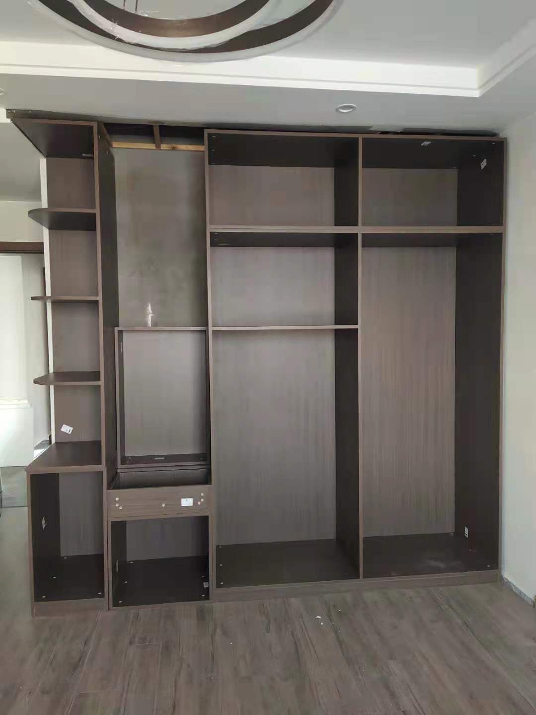 柜門師傅用柏油清洗劑全部擦拭一遍,以保證裝到客戶家整潔美觀。