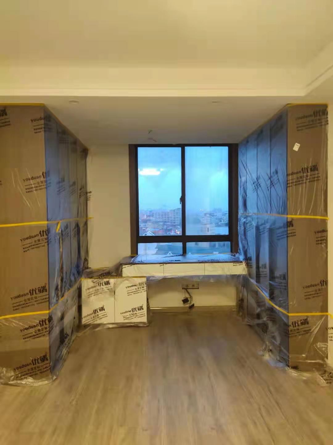 我們的柜子都用塑料膜保護起來了