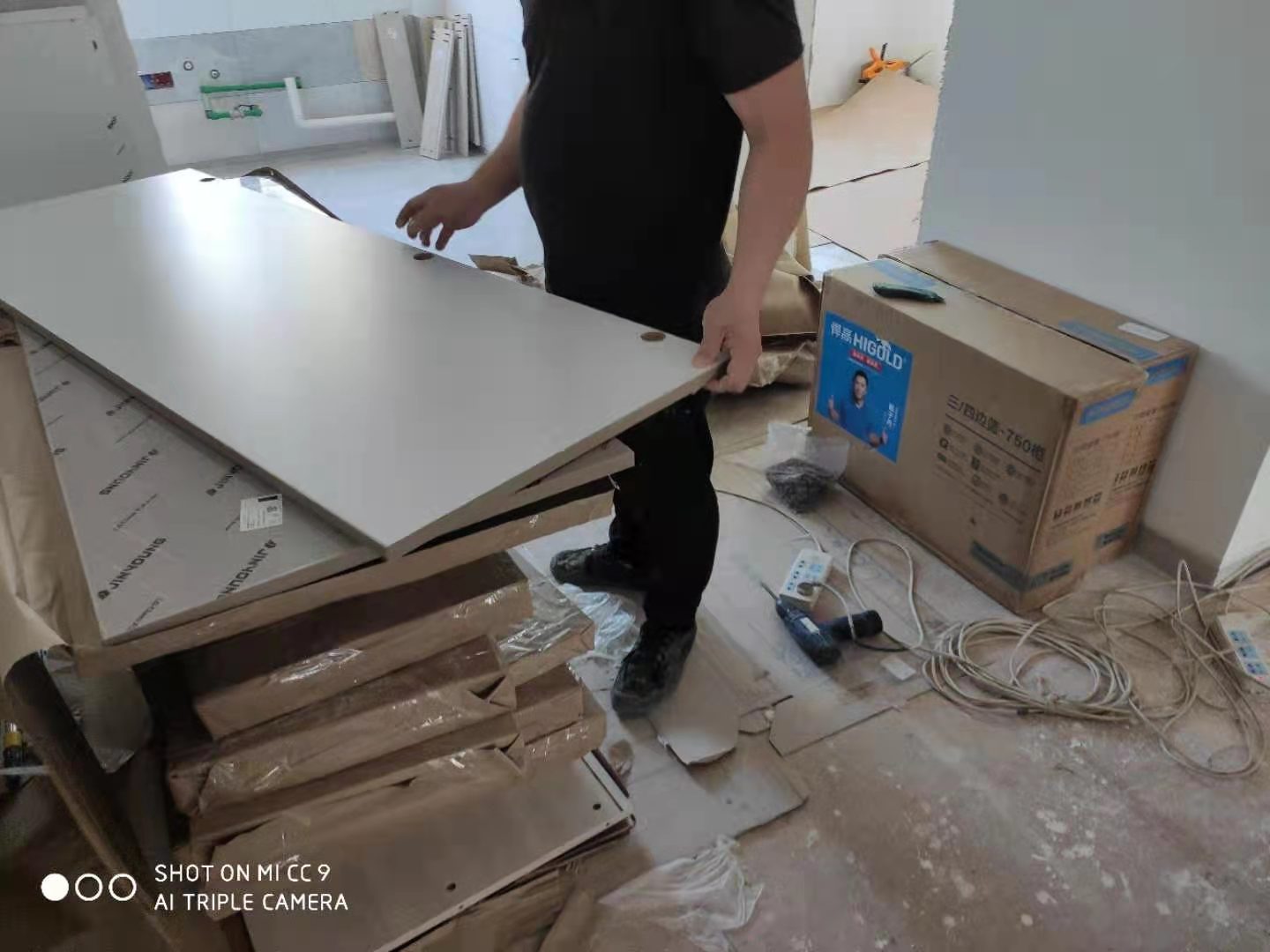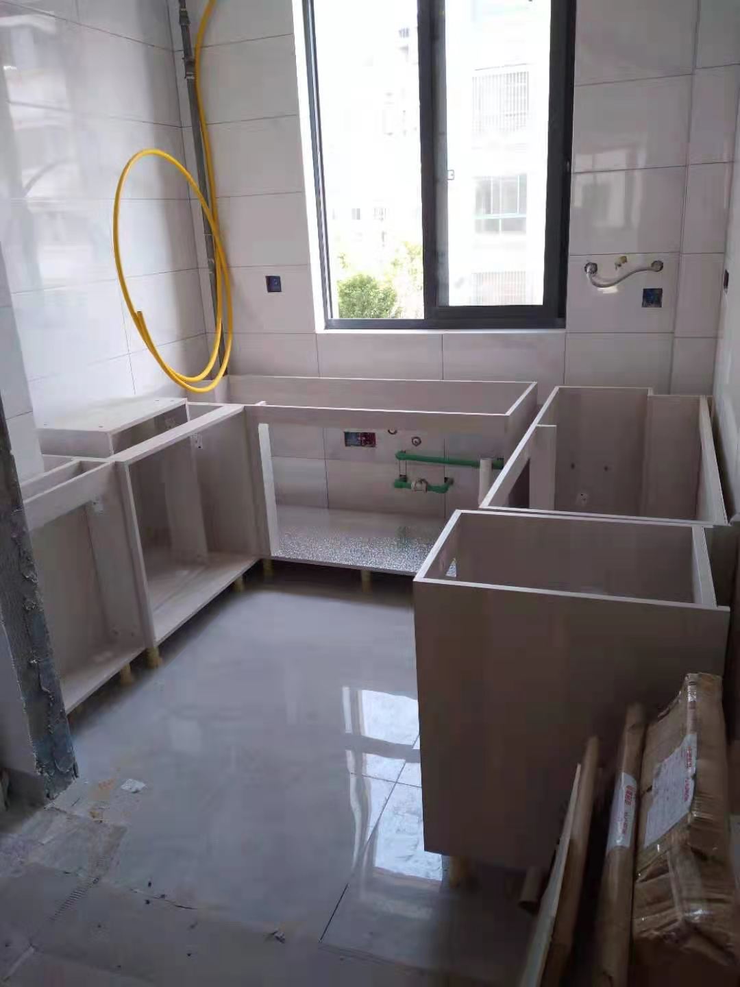 安裝階段請您把您家需要用到的廚房水槽、灶具、浴柜臺盆放置在現場,后期臺面安裝需用到。