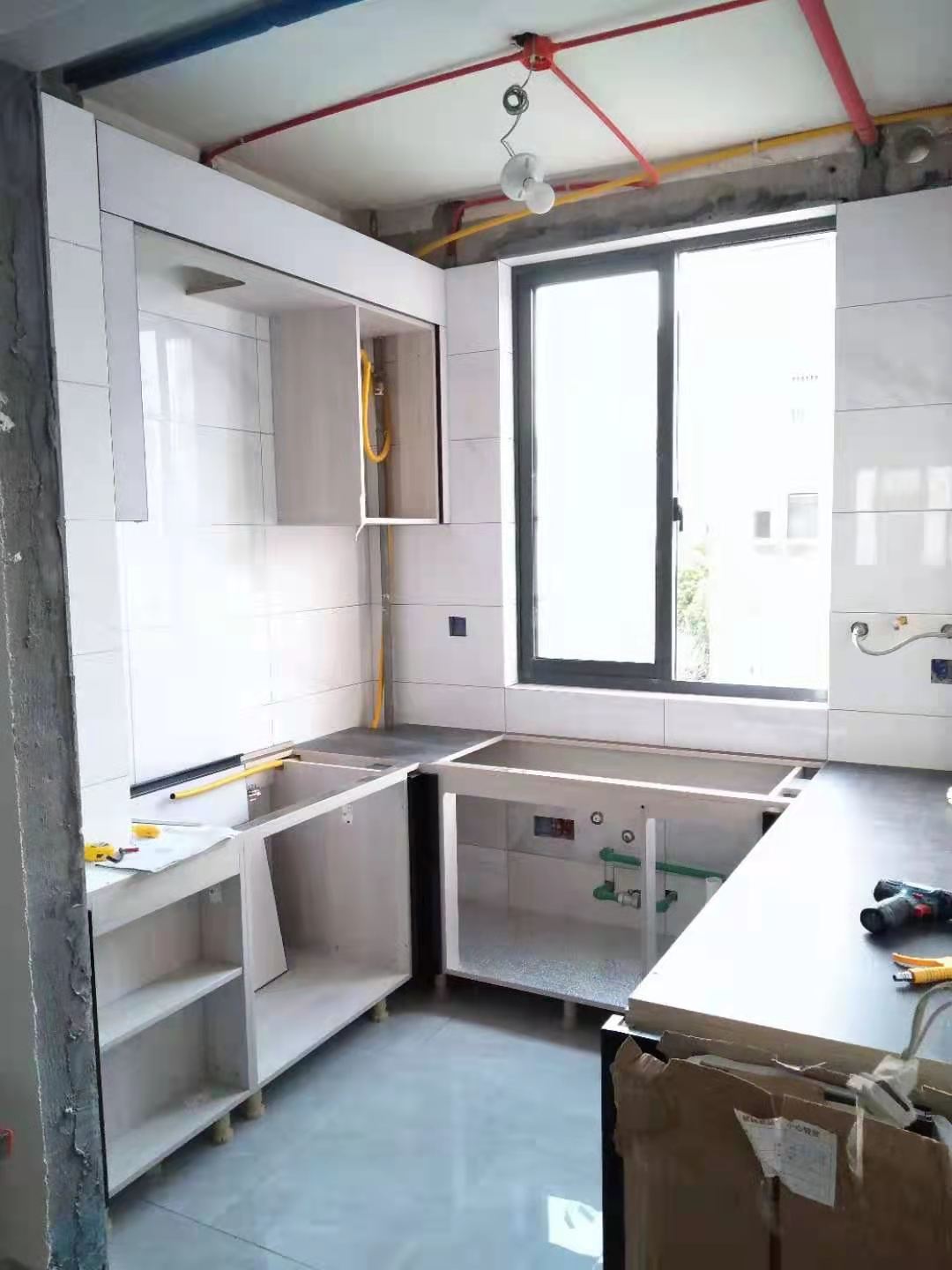 柜子安裝好后進入臺面測量環節,臺面量完后一個星期內送貨并安裝。