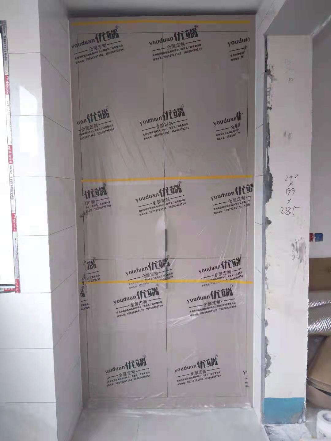 柜門師傅會用柏油清洗劑全部擦拭一遍,以保證裝到客戶家整潔美觀。