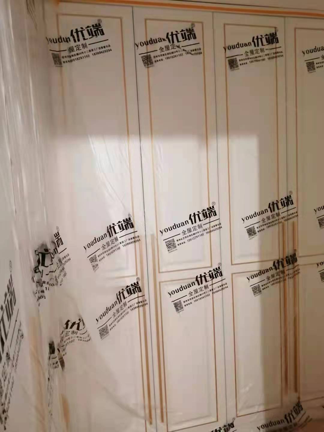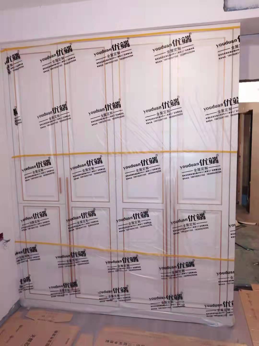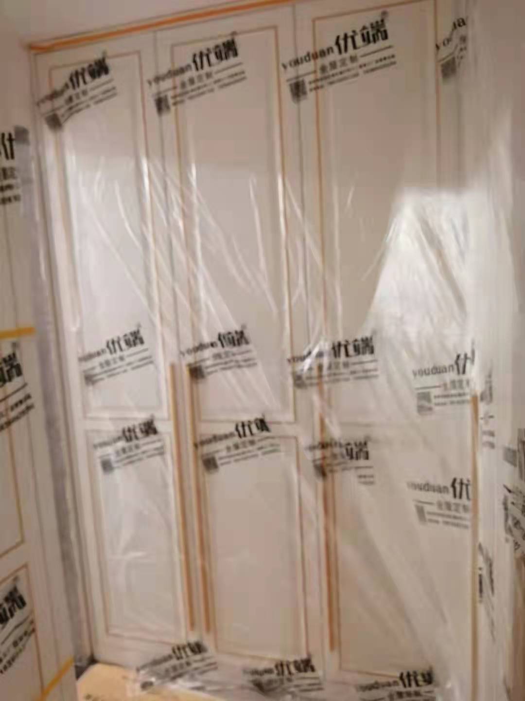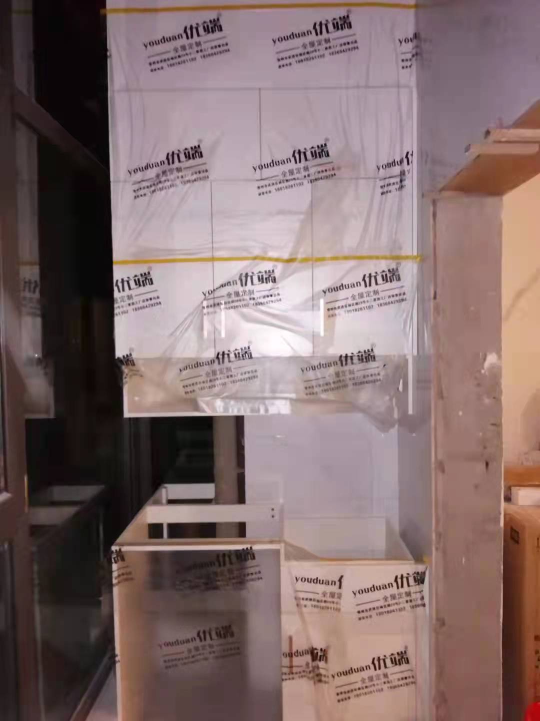 安裝完成的柜子都用塑料膜保護(hù)起來了
