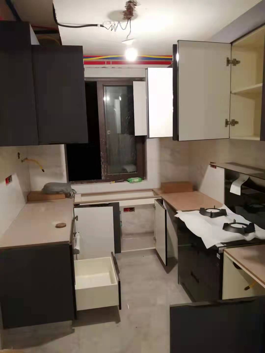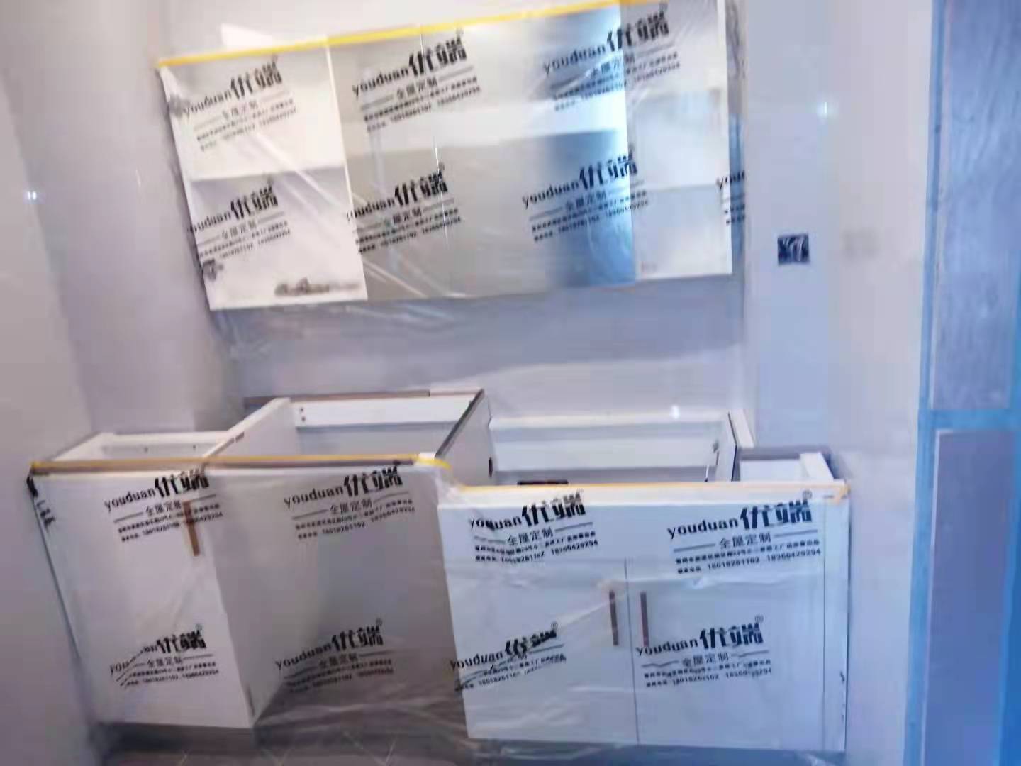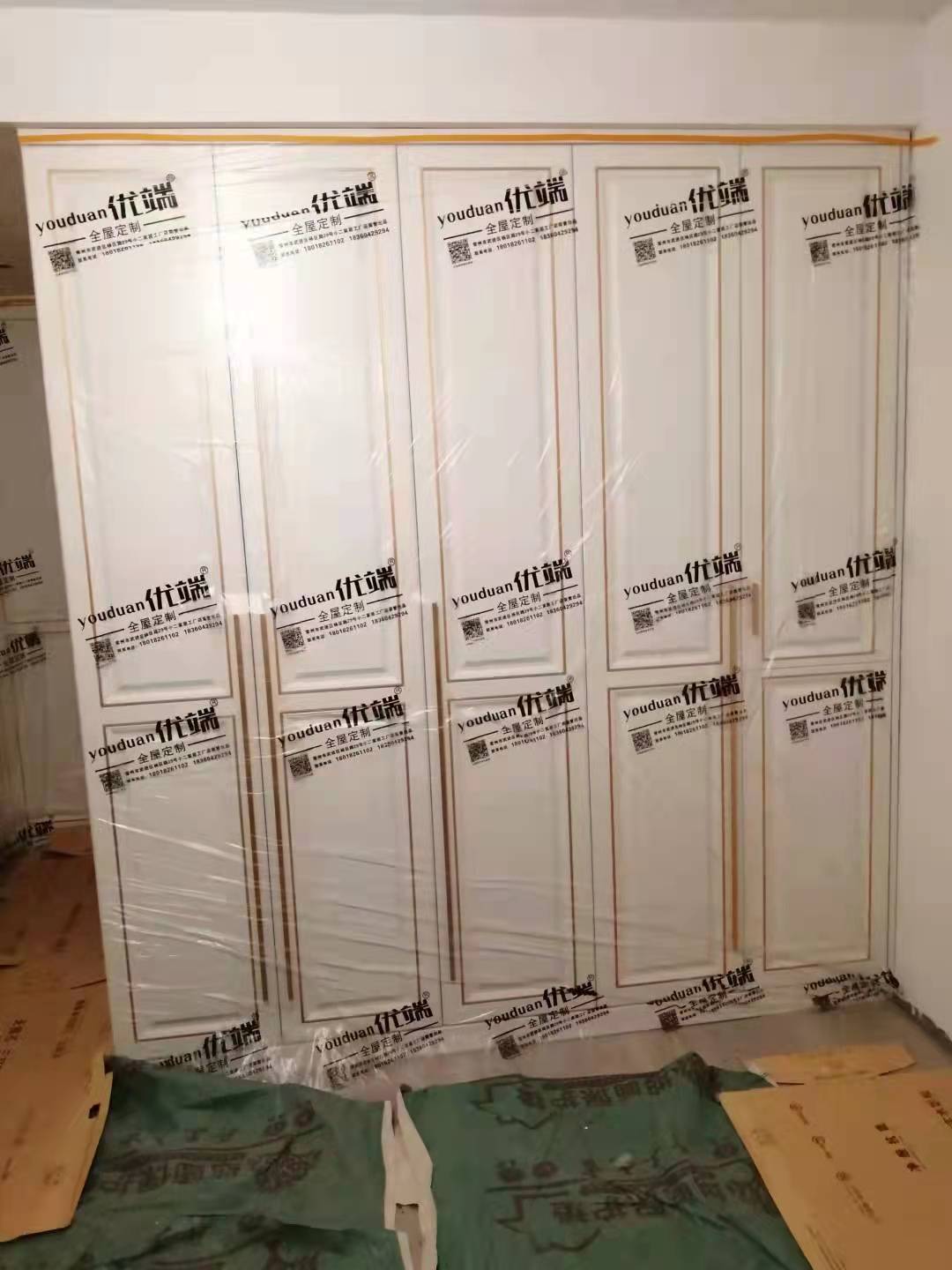 安裝完成的柜子都用塑料膜保護(hù)起來了