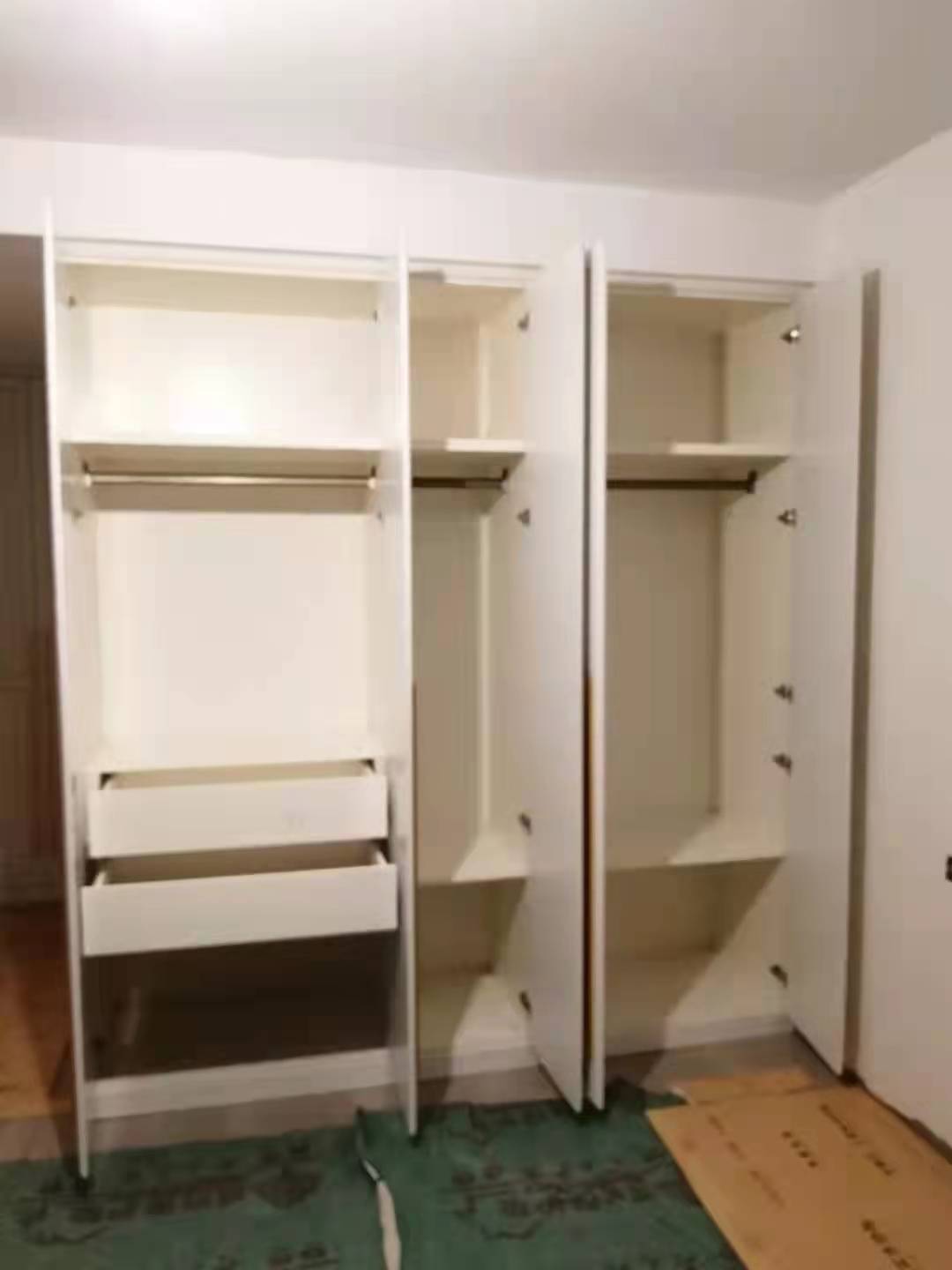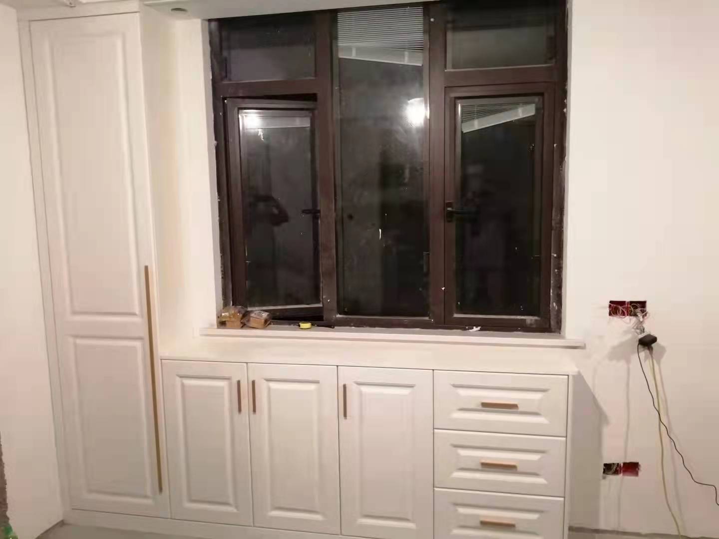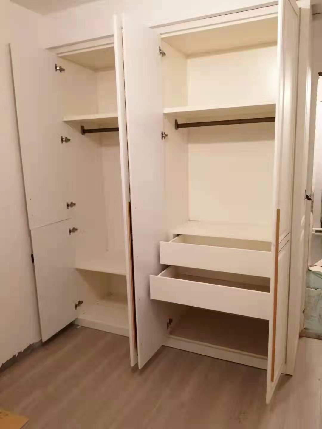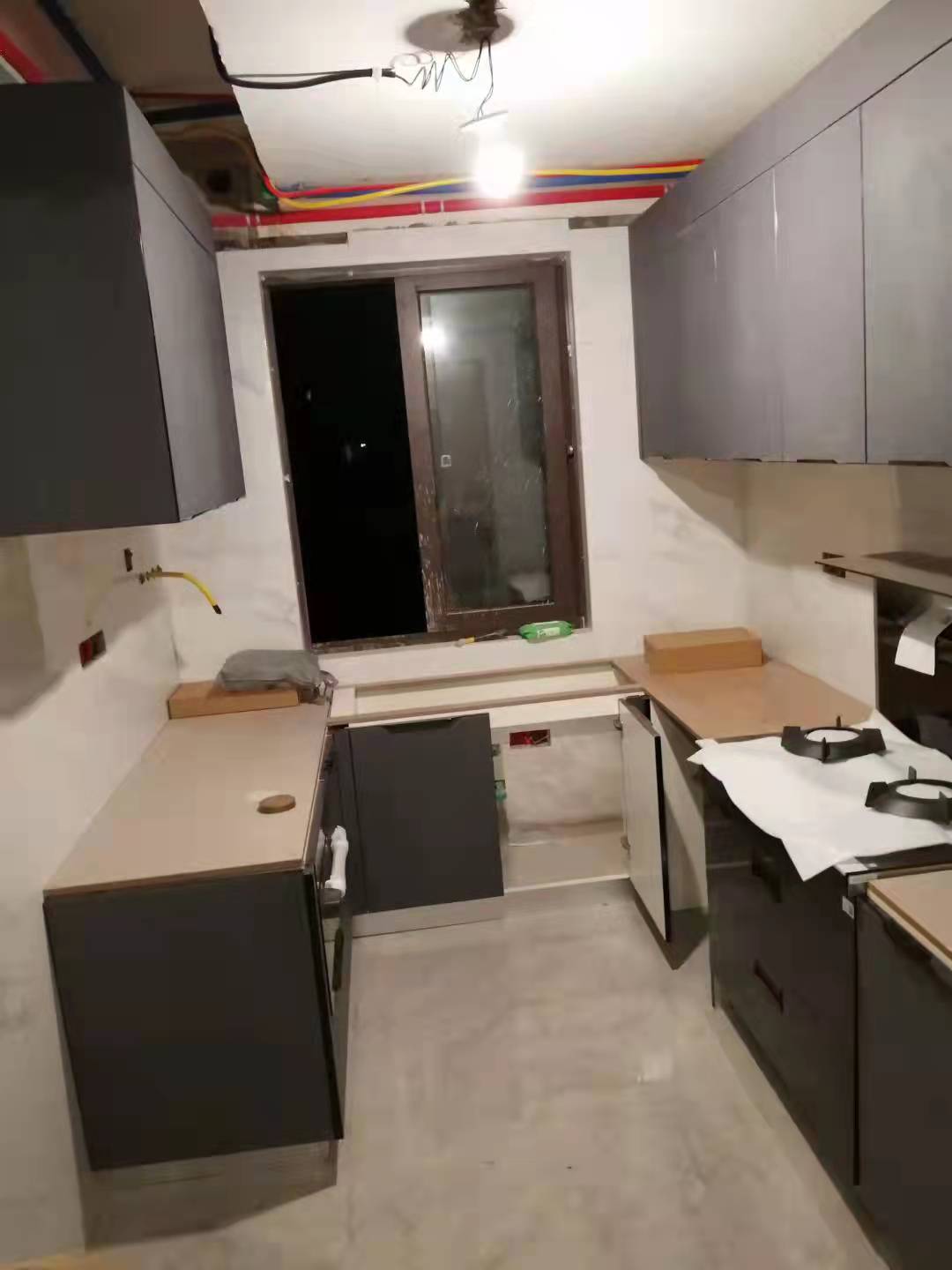安裝完成的柜子都用塑料膜保護(hù)起來了