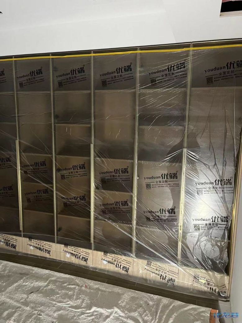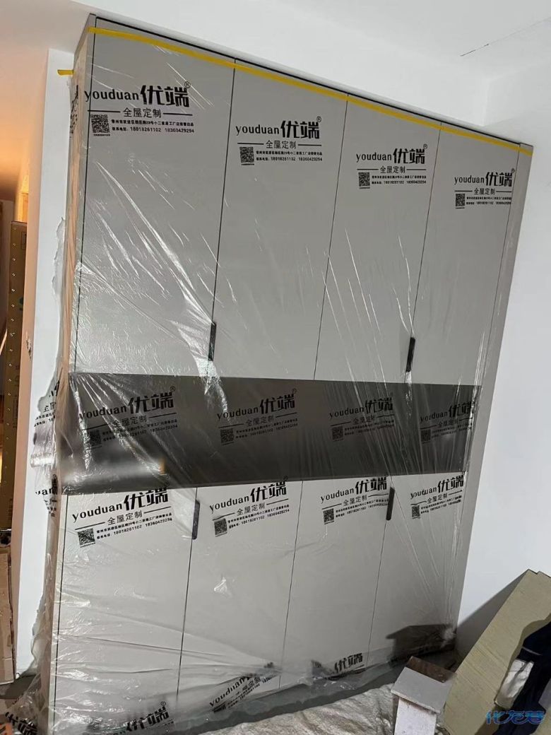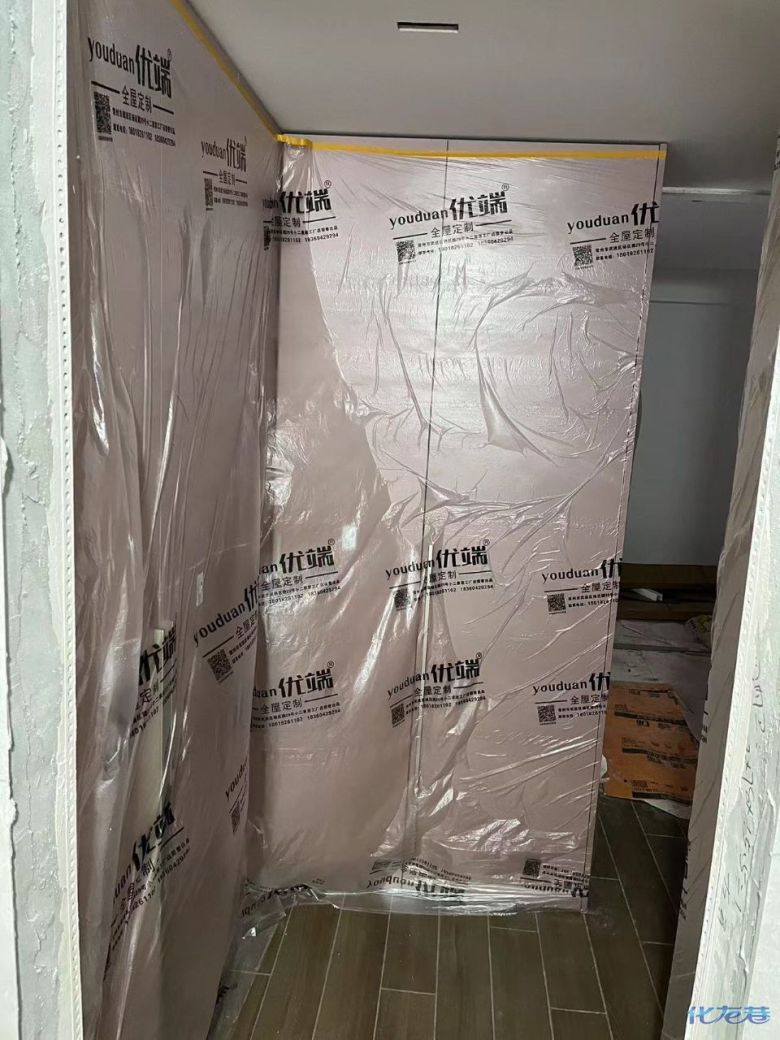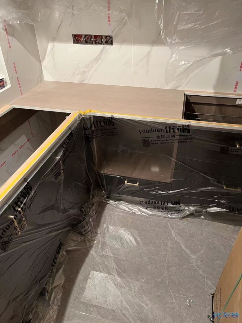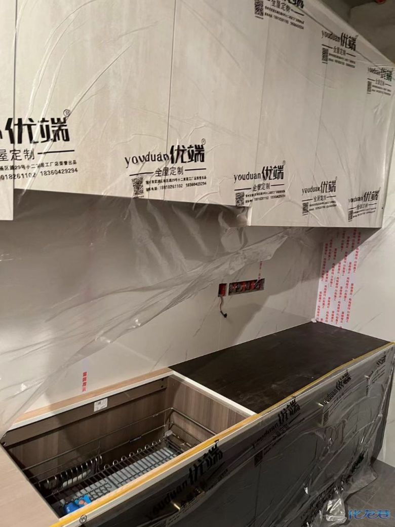 安裝完成的柜子都用塑料膜保護起來了
