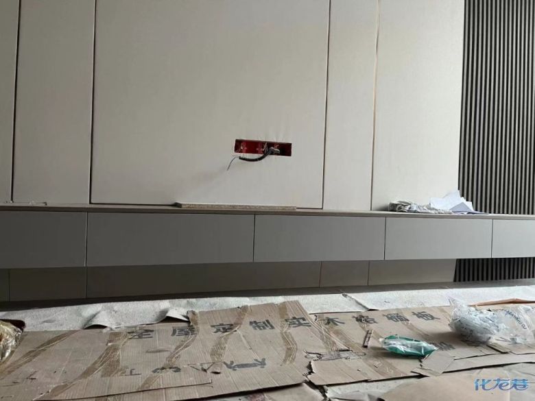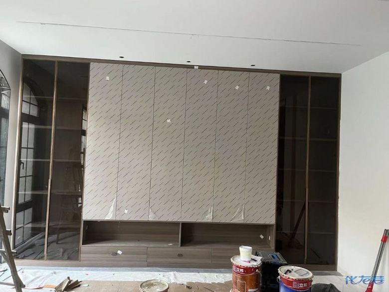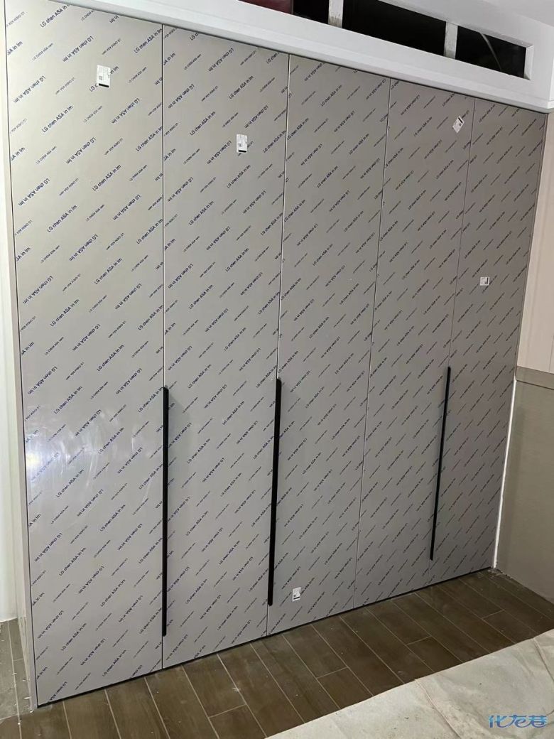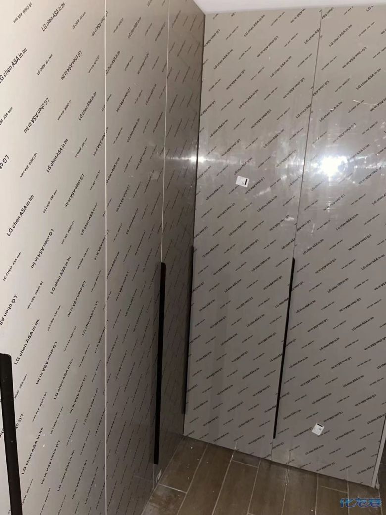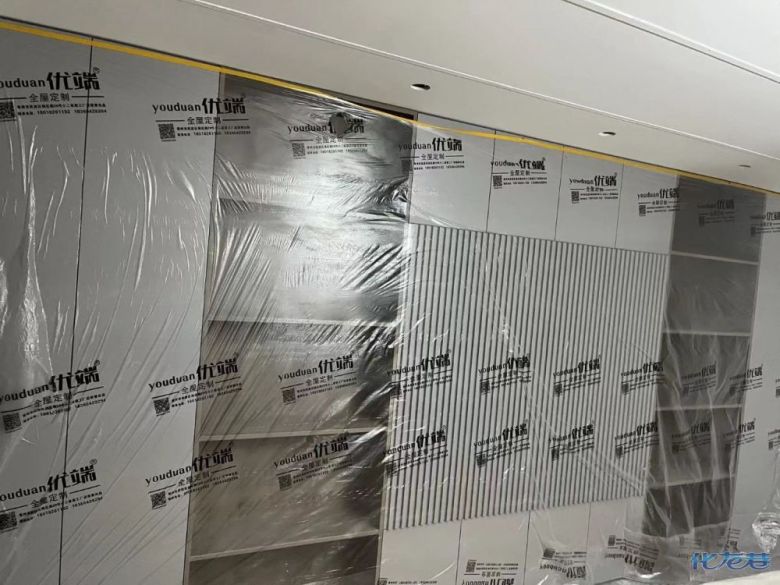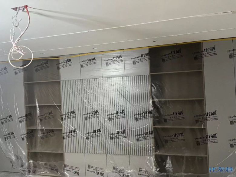 安裝完成的柜子都用塑料膜保護起來了