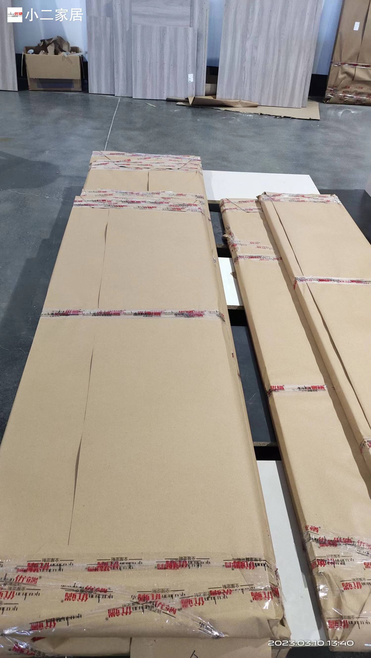 進入打包環節,我家柜子每塊板都是整個打包起來的,以防運輸過程中劃傷或者磕碰到,跟板材下面墊板一個原理哦!重新訂板會存在色差,這是重點,圈起來必考。全部打包好就可以聯系客戶送貨咯!