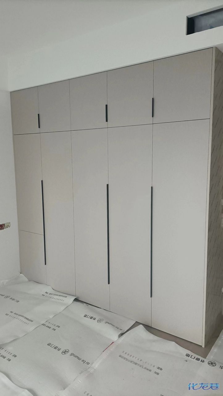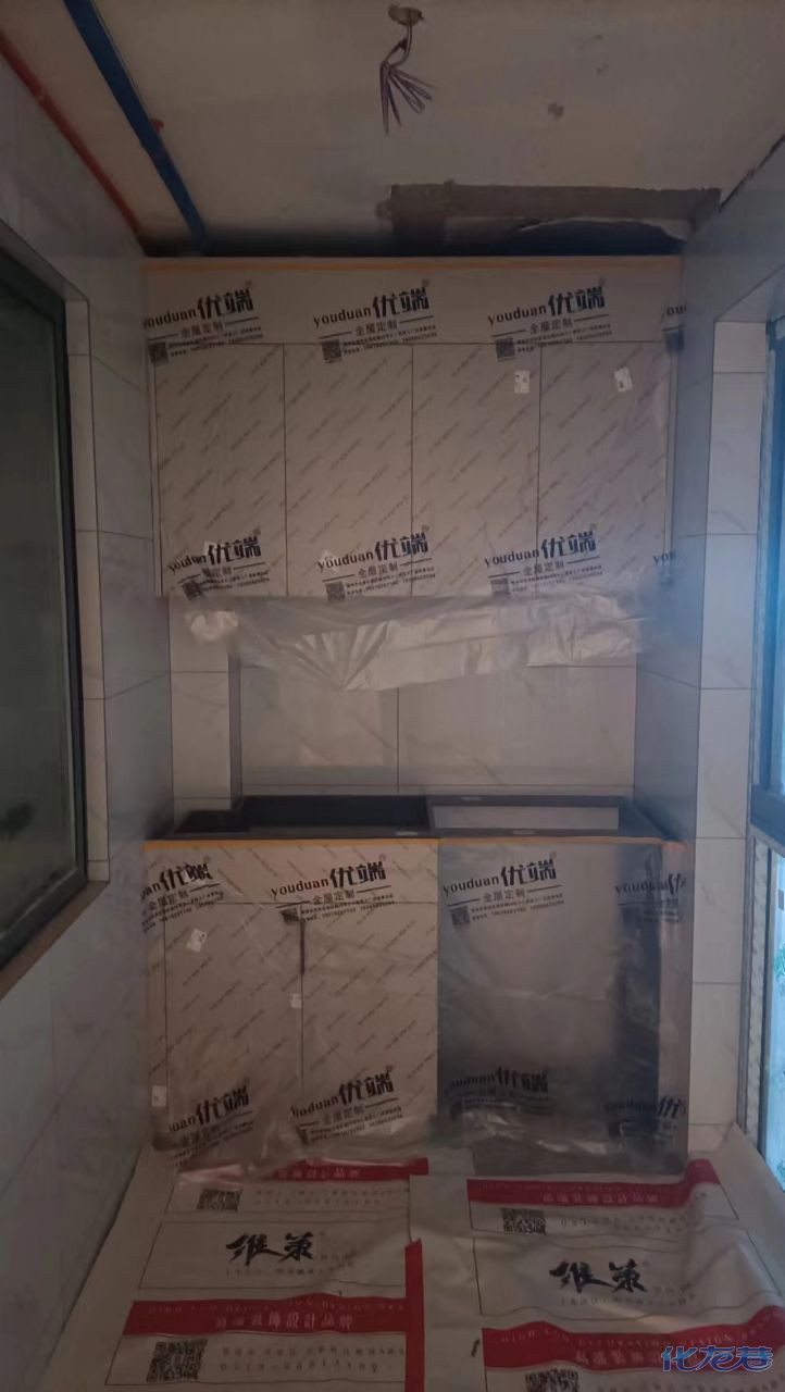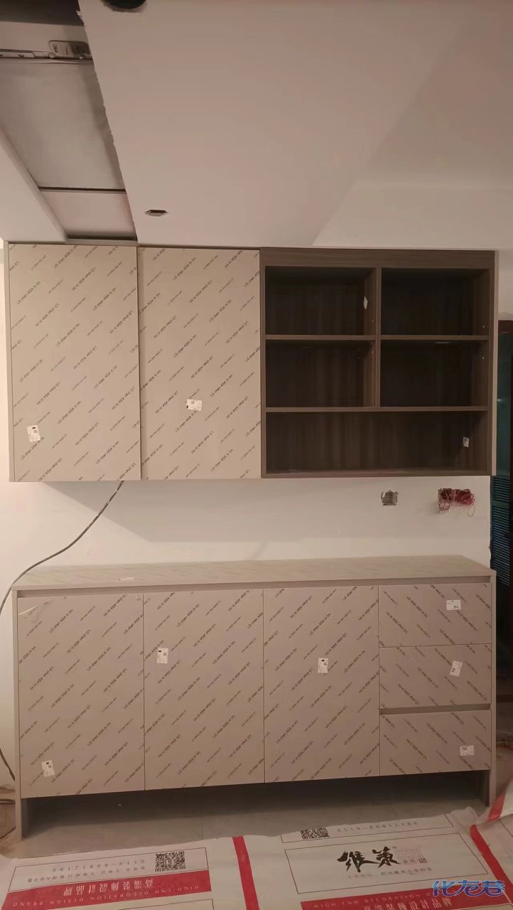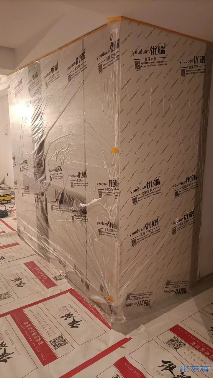 安裝完成的柜子都用塑料膜保護起來了
