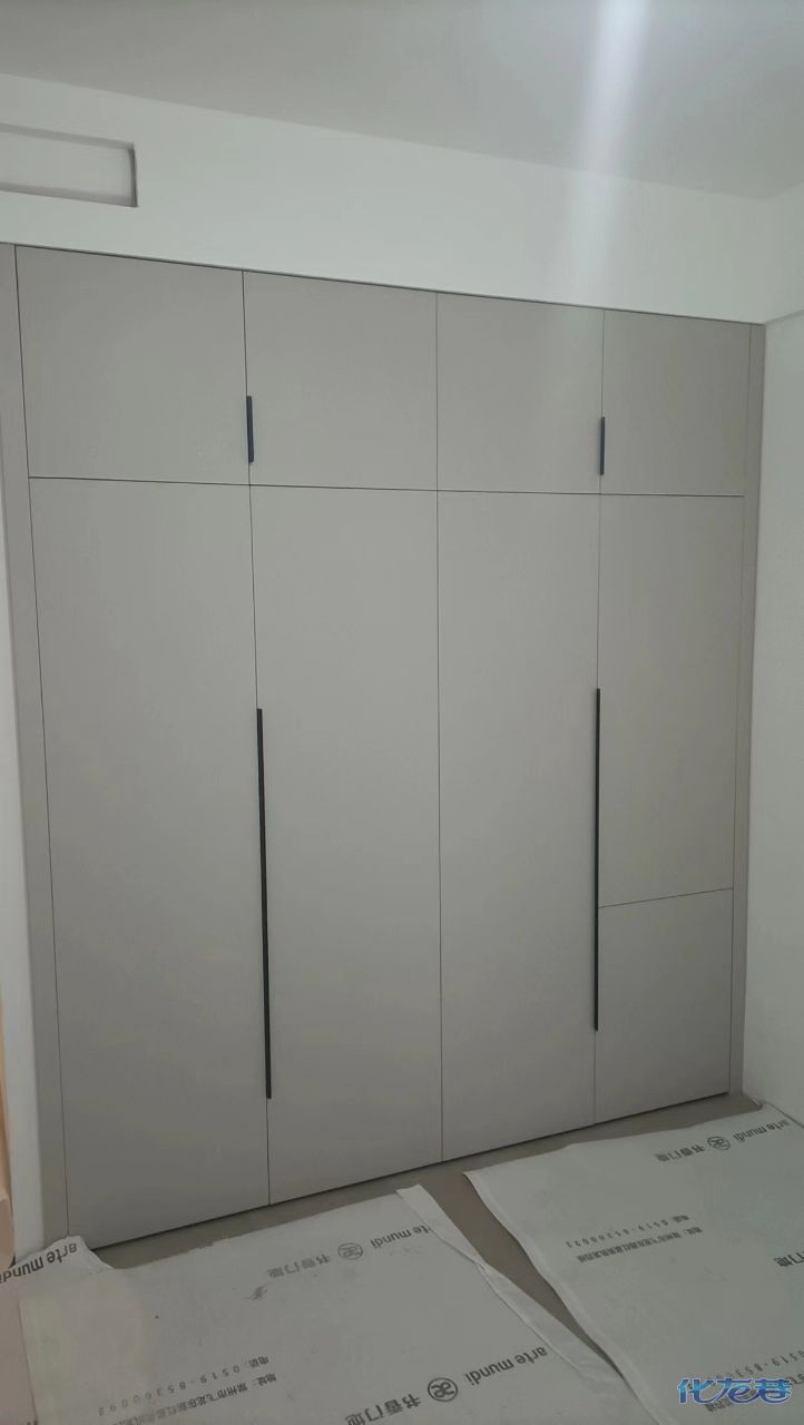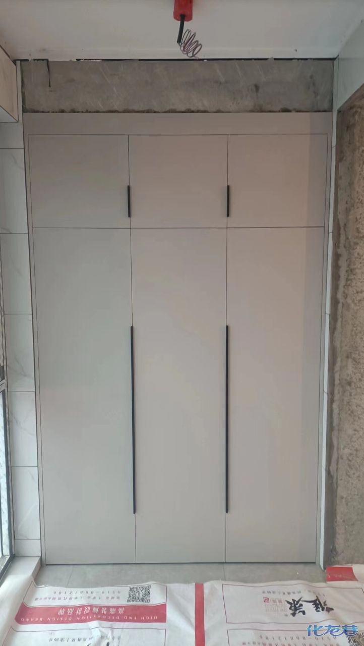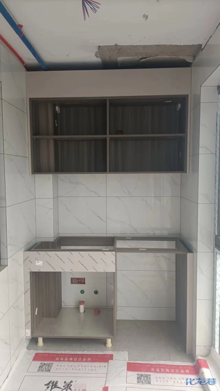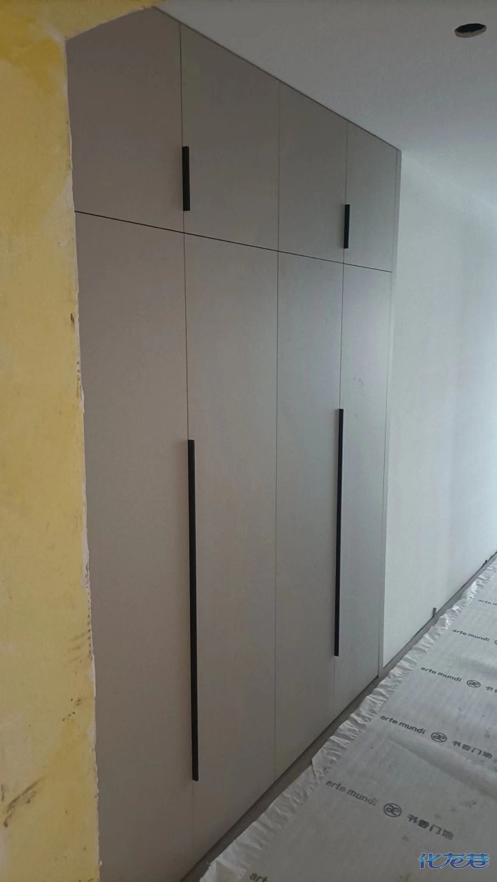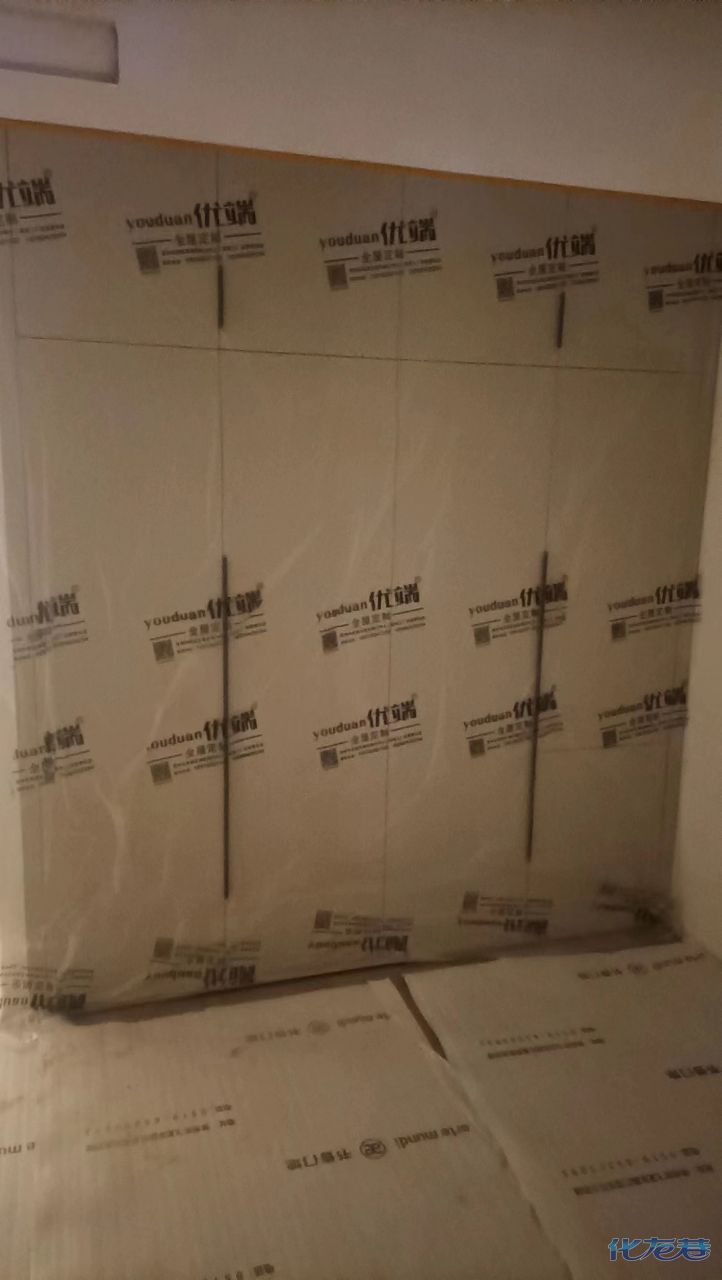 安裝完成的柜子都用塑料膜保護起來了
