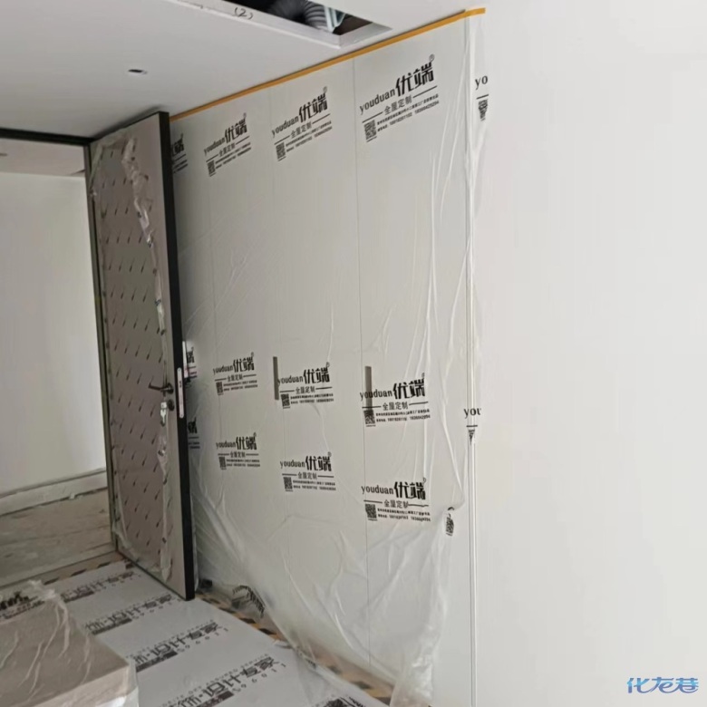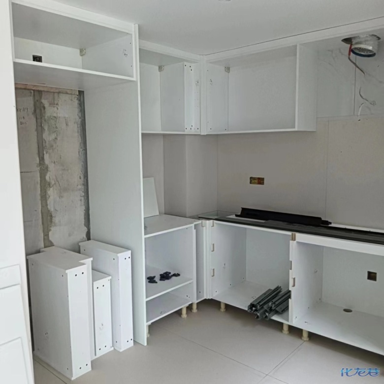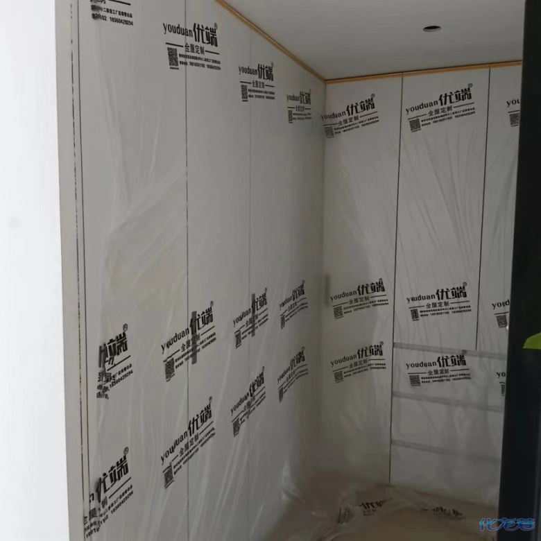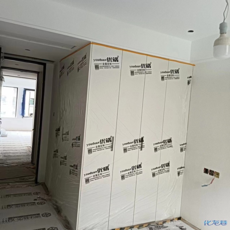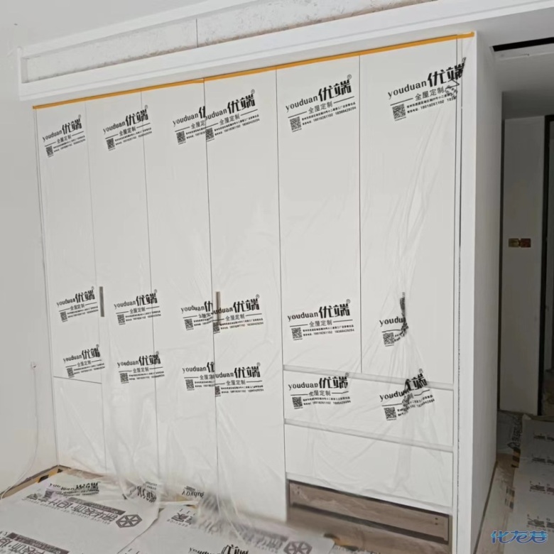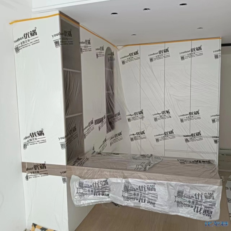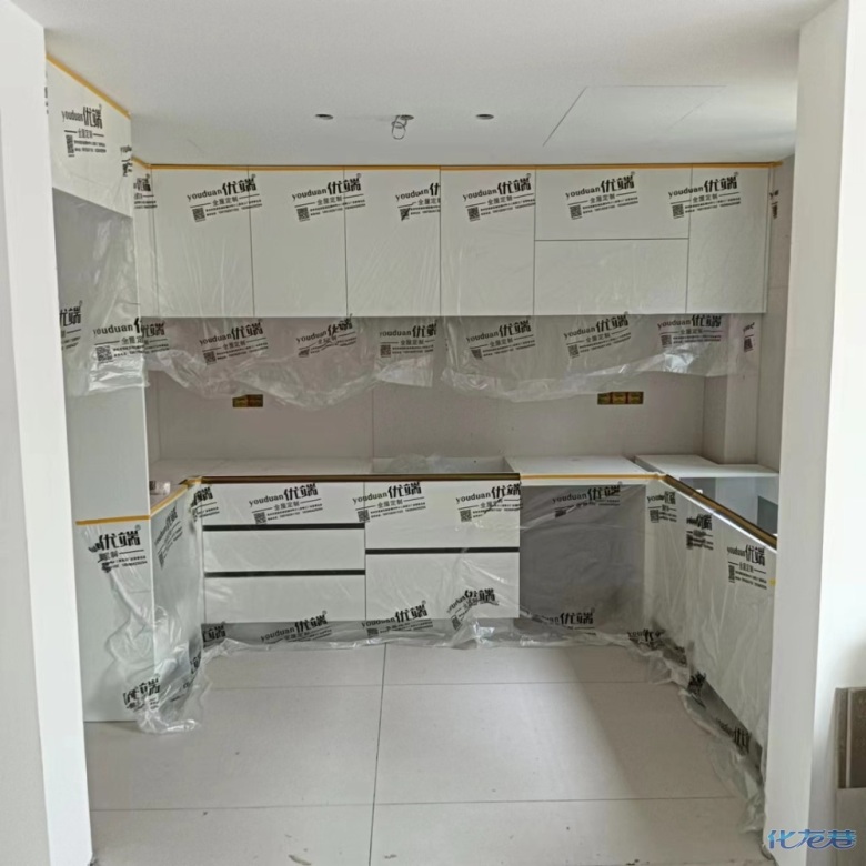 安裝完成的柜子都用塑料膜保護(hù)起來了