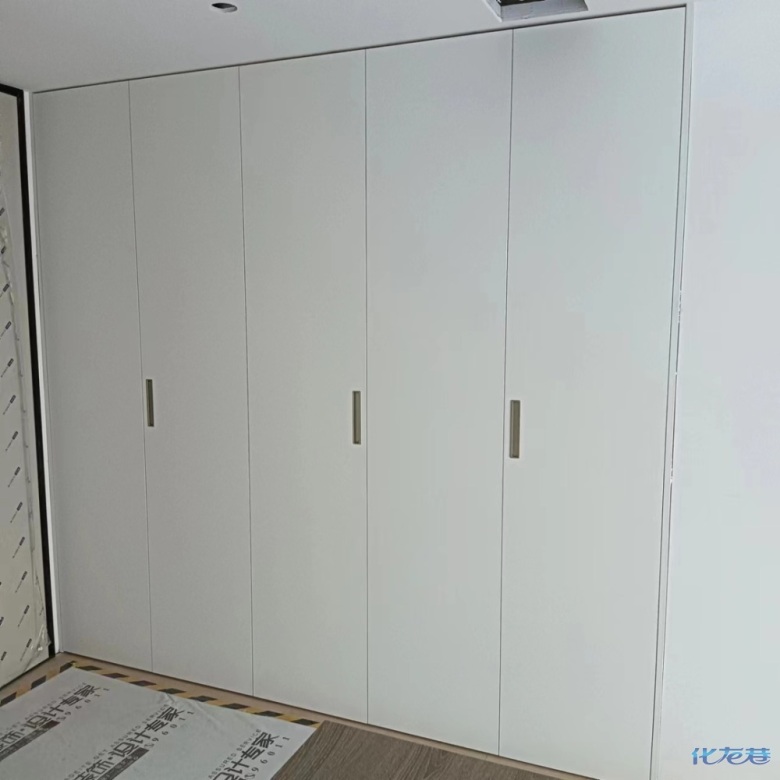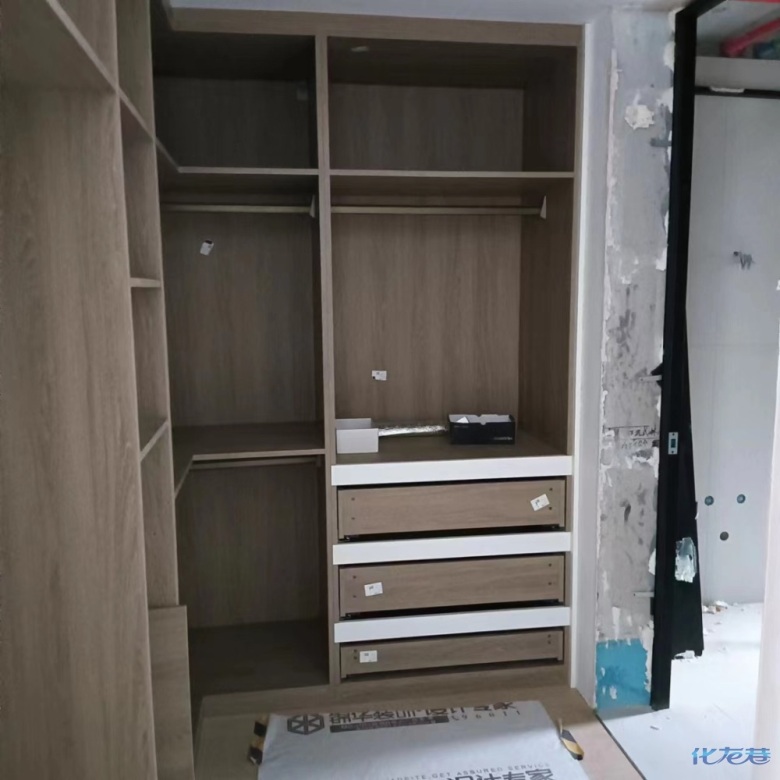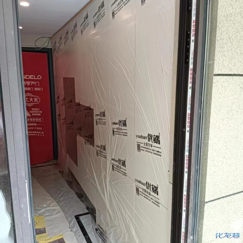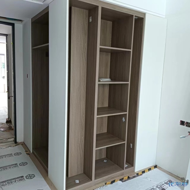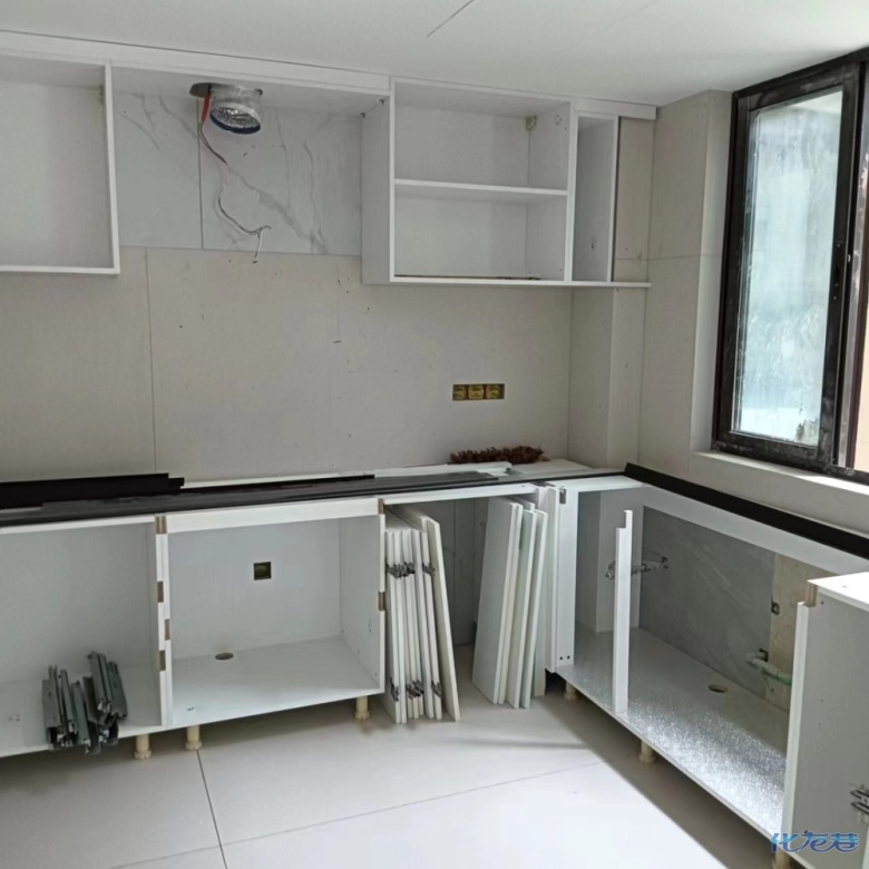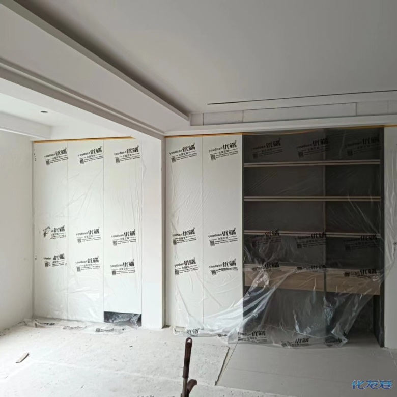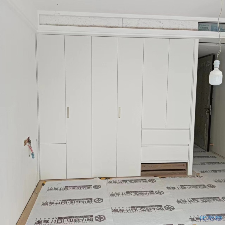 安裝完成的柜子都用塑料膜保護(hù)起來了