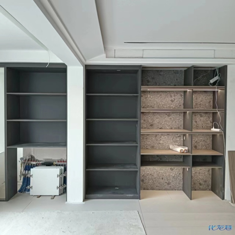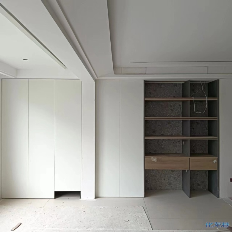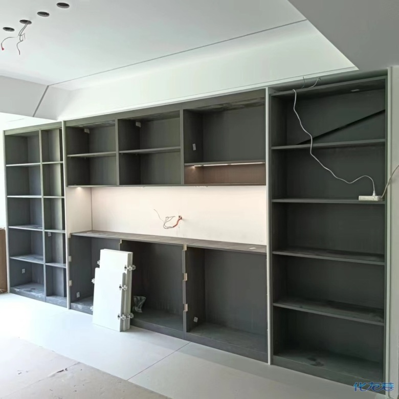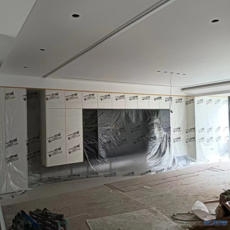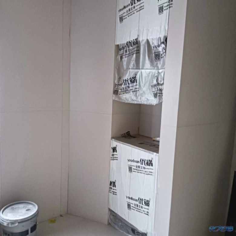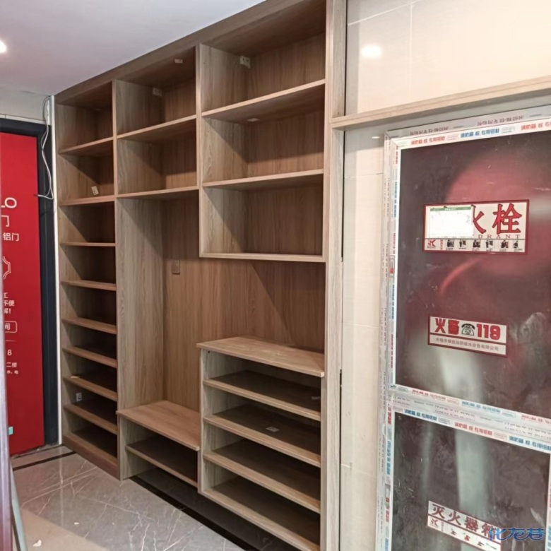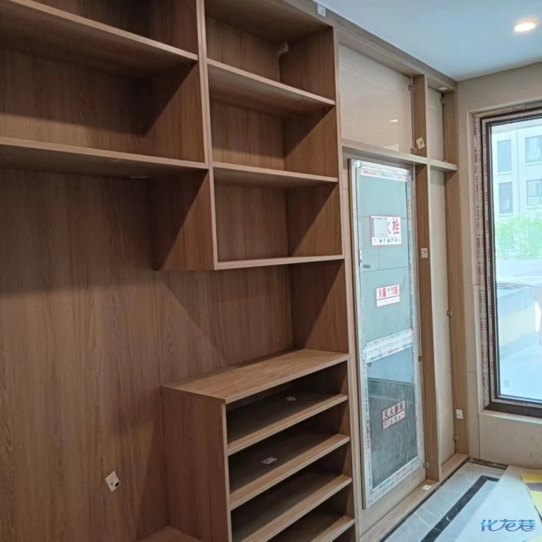 安裝完成的柜子都用塑料膜保護(hù)起來了