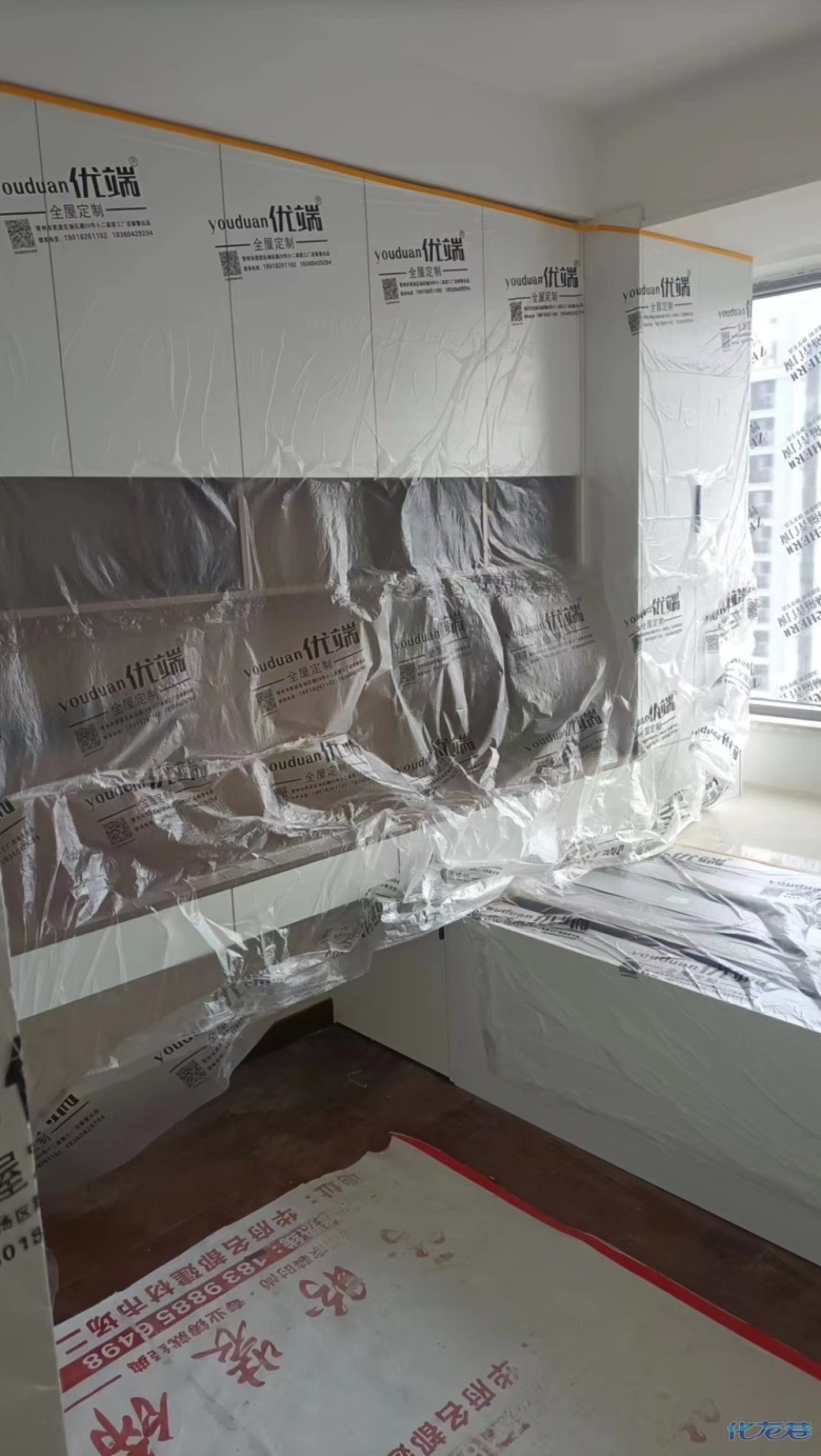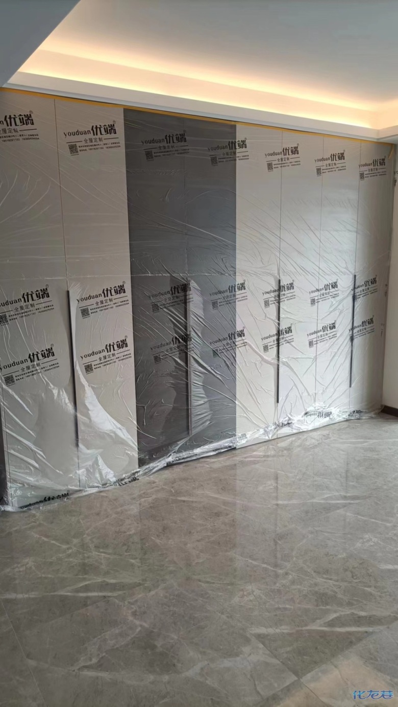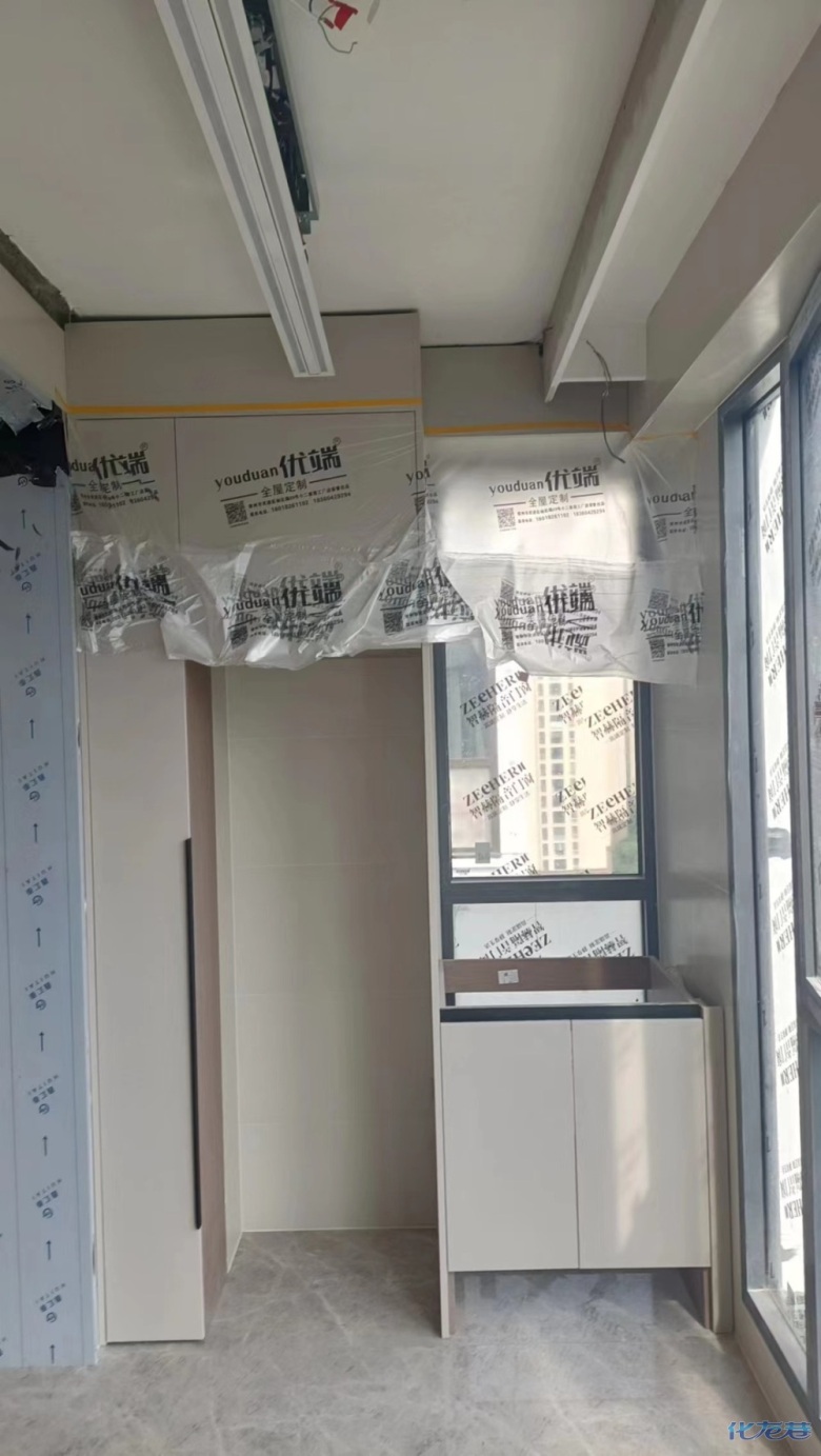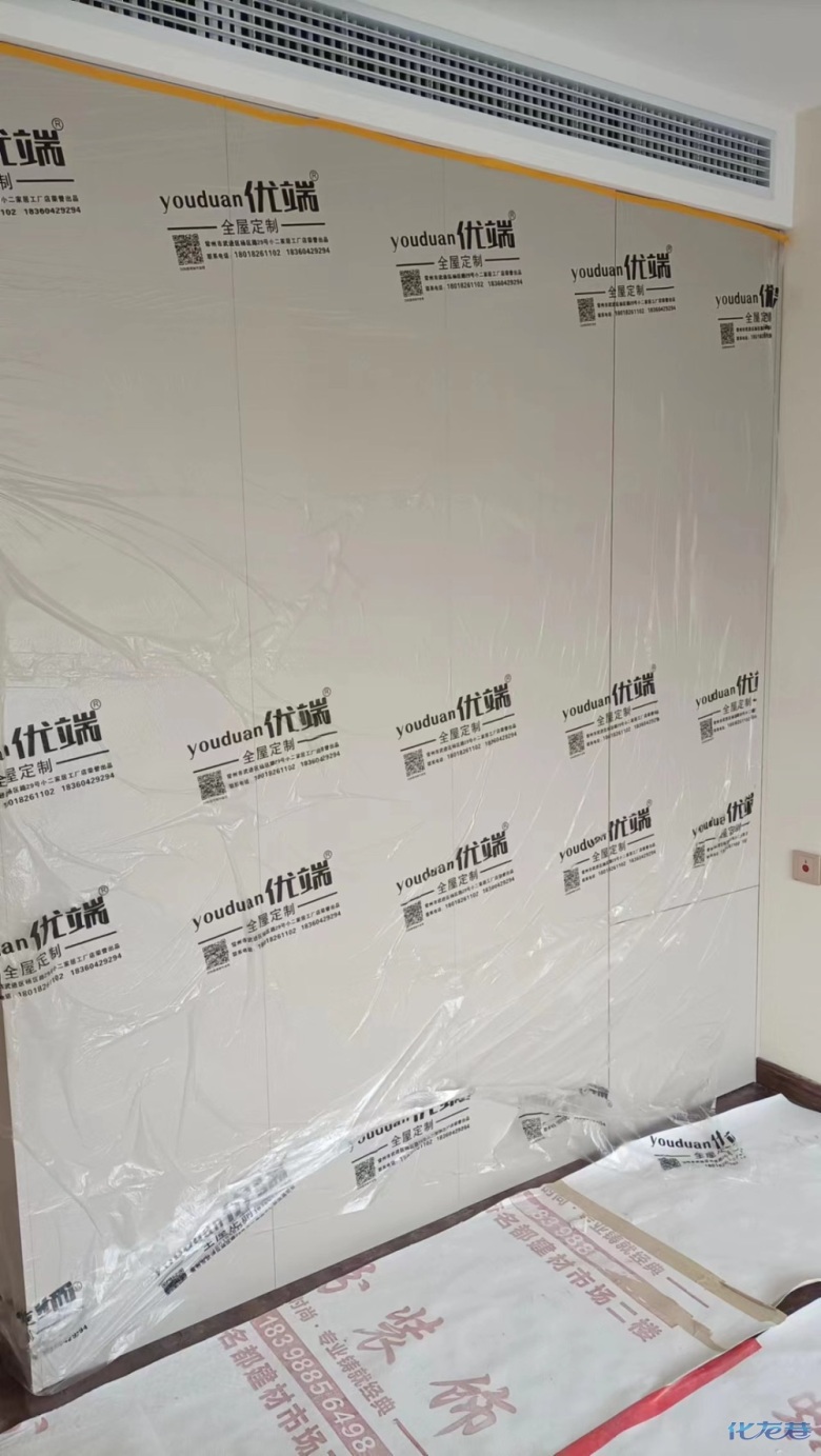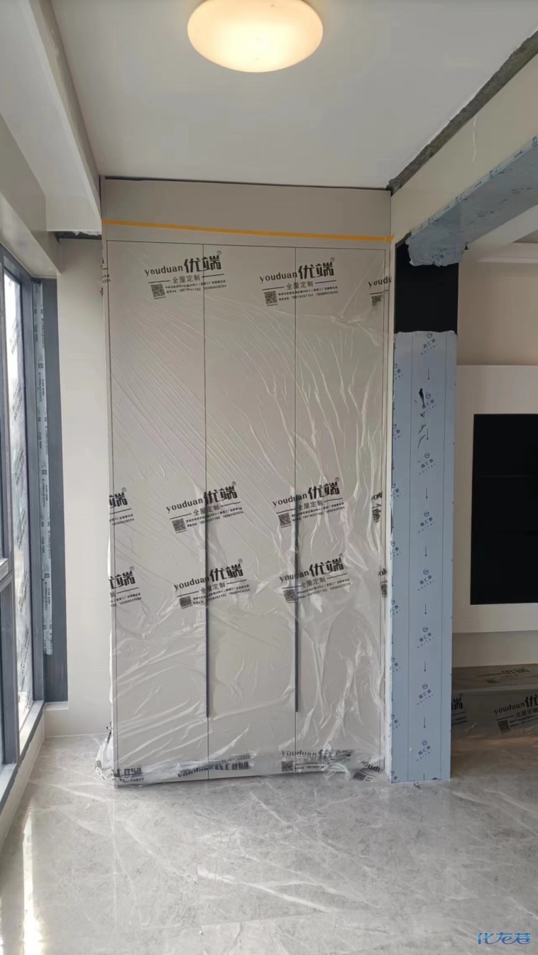 安裝完成的柜子都用塑料膜保護(hù)起來了
