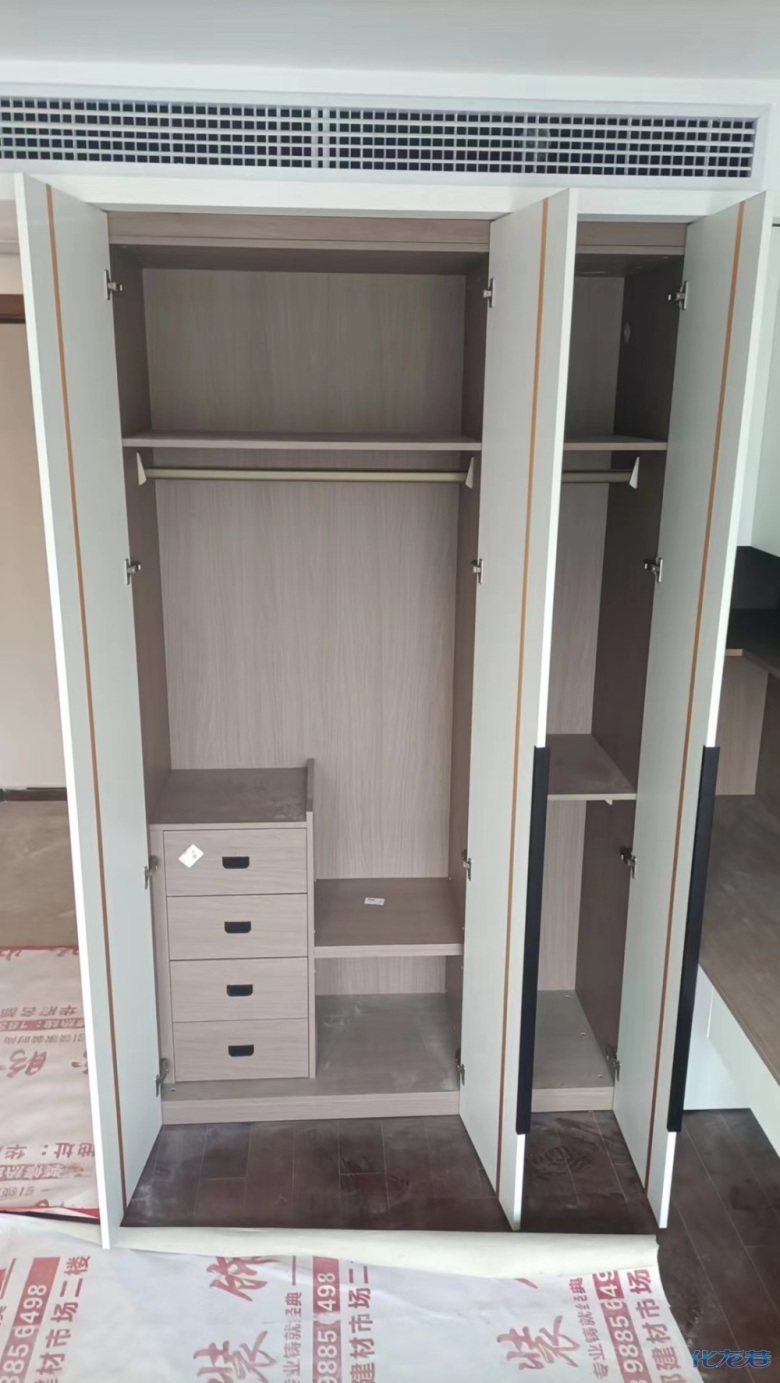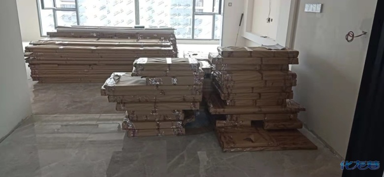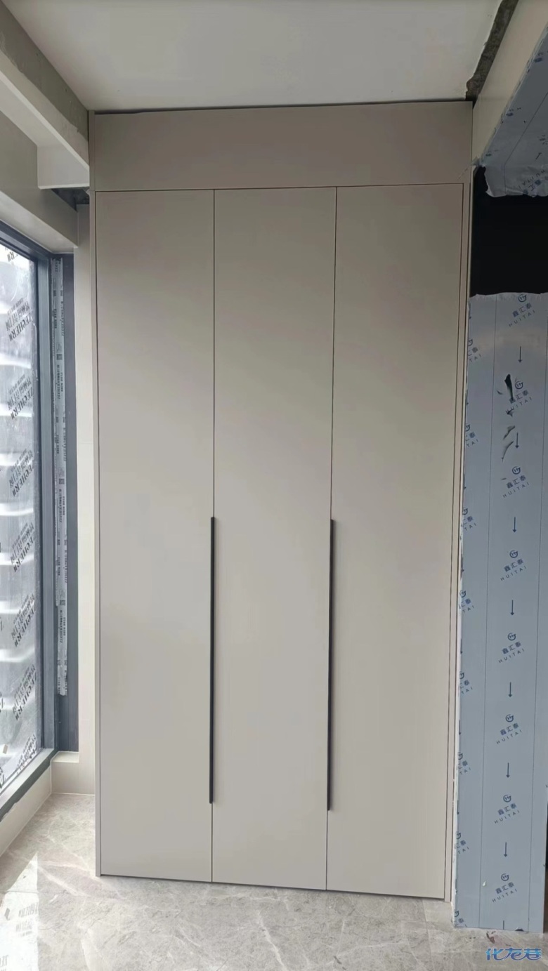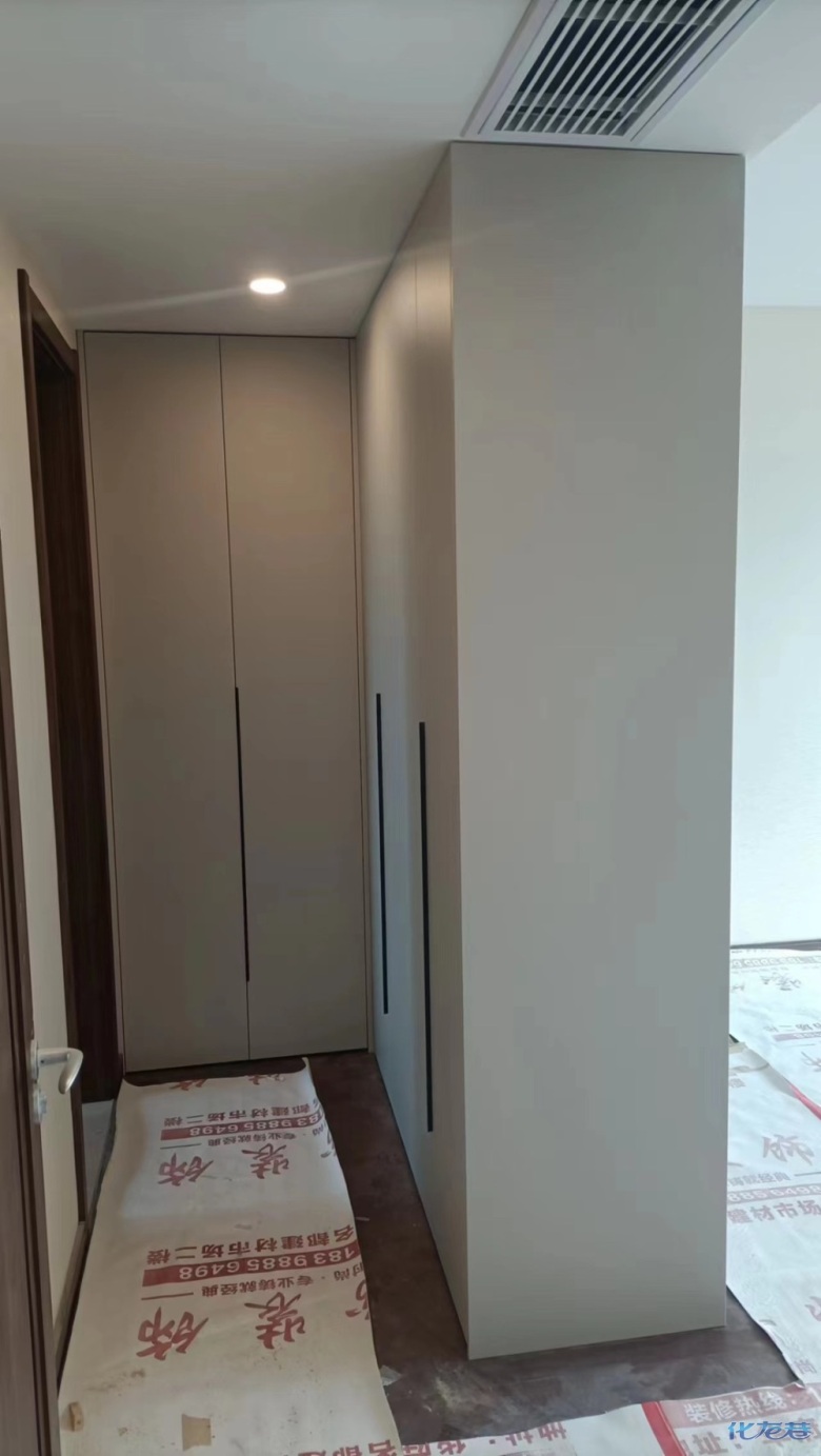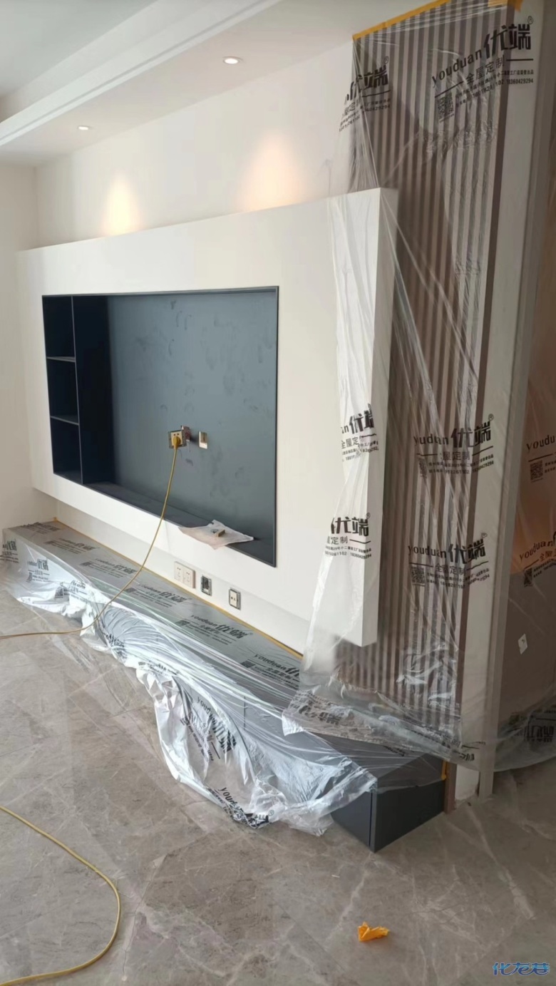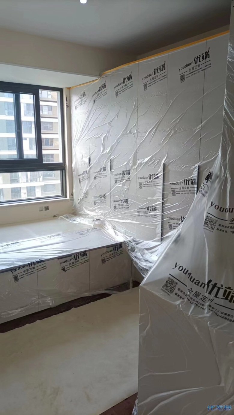 安裝完成的柜子都用塑料膜保護(hù)起來了